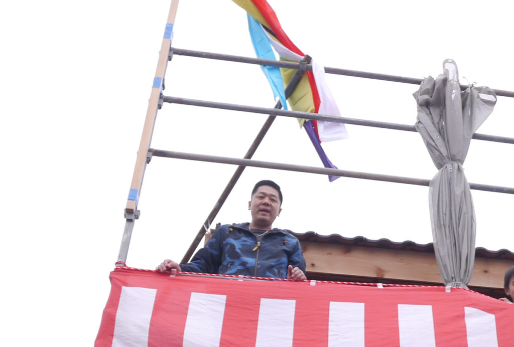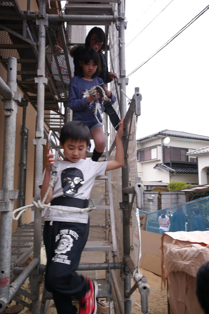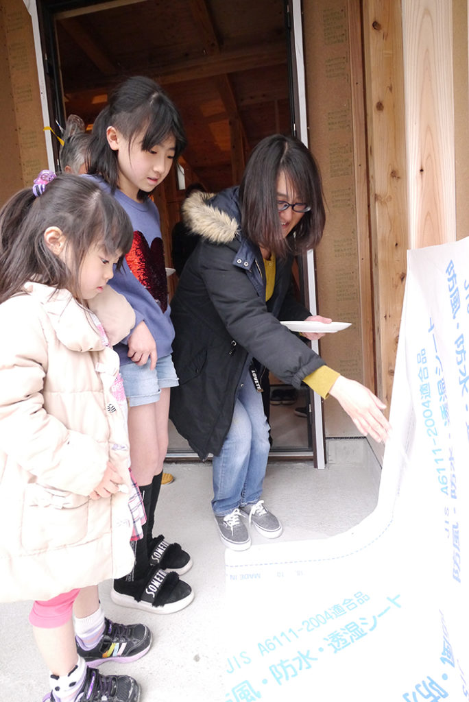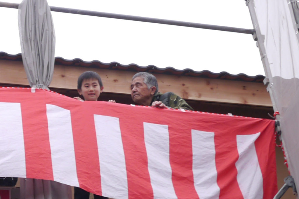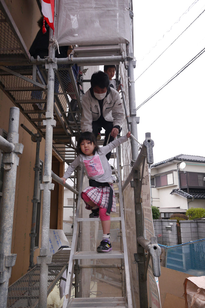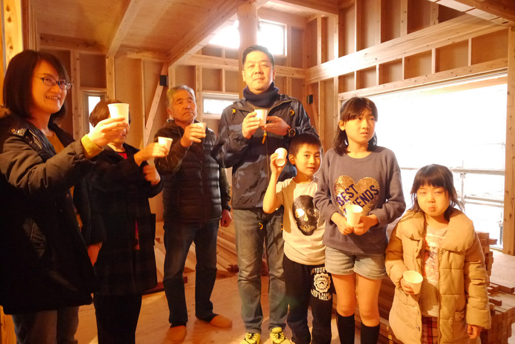 無事に棟上げ工事が終わった後に行われた、上棟式もちまきの様子です(*’▽’)♪