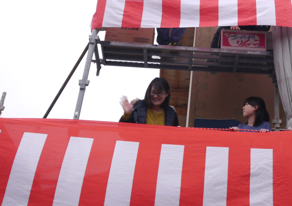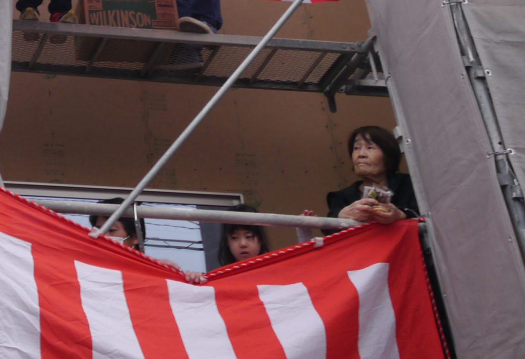 これから始まる餅まきに、ワクワクしながらスタンバイ中!
