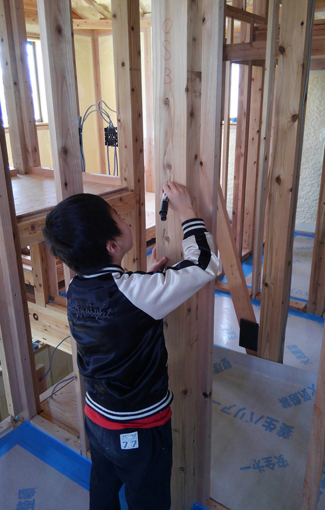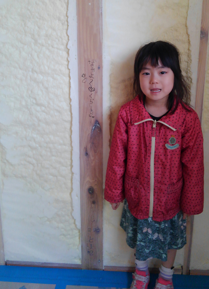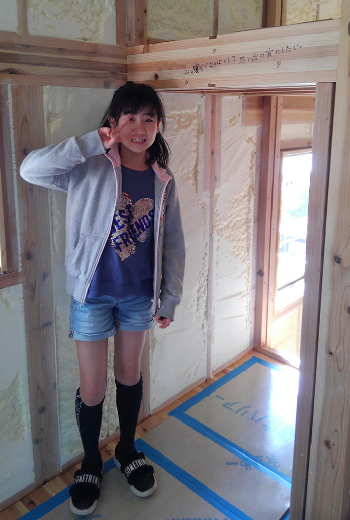 『思い出つくり』は、完成したら見えなくなってしまう壁や柱を選んで記念に残る言葉を書いていただきます(#^^#)