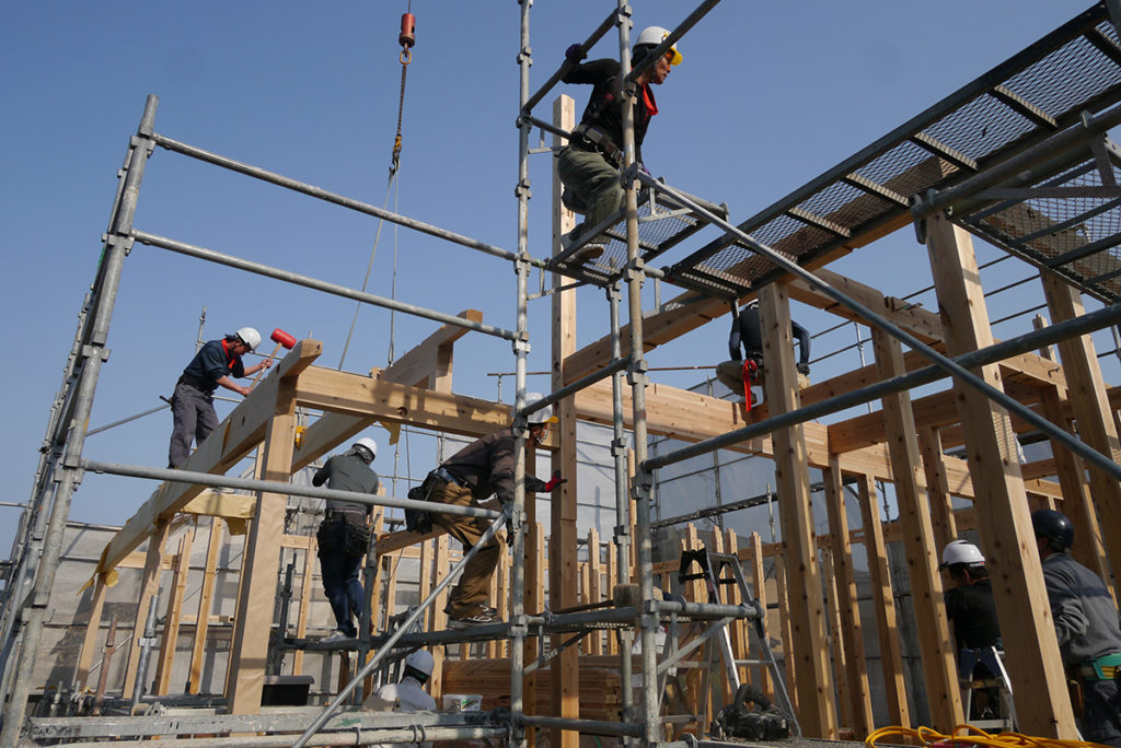 大工さんたちは協力し合って工事を進めていきます!