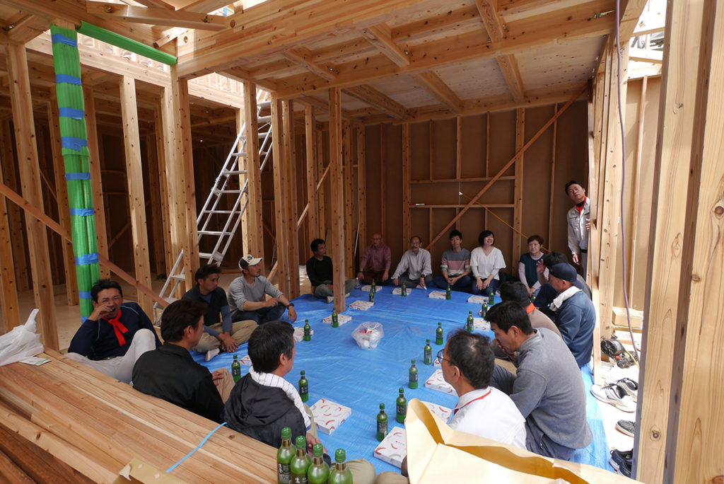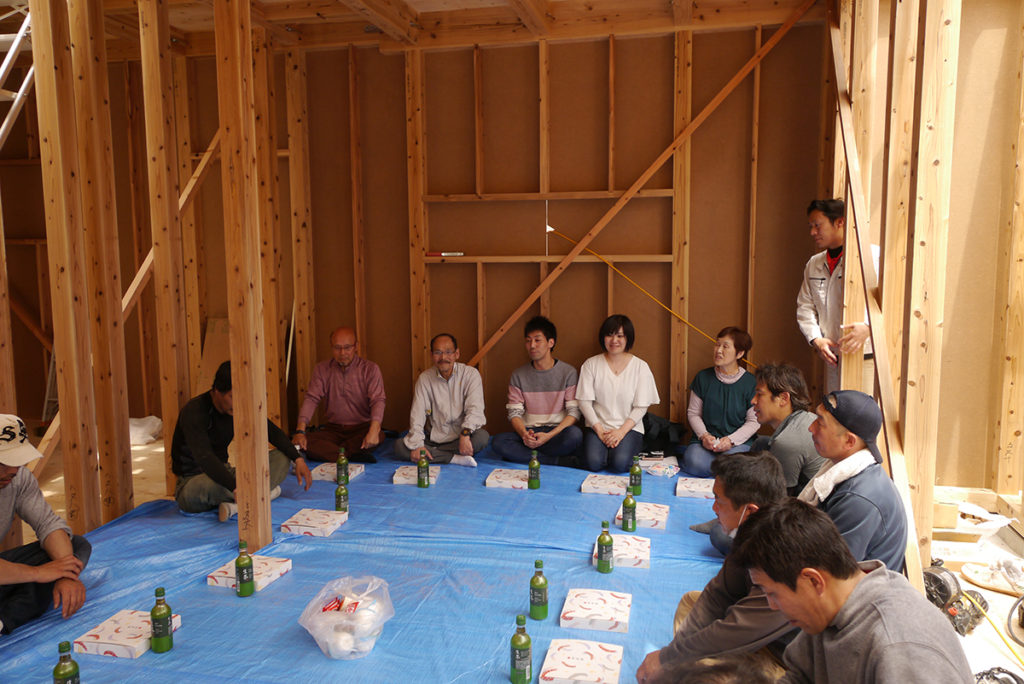 棟上げの日はこうしてお施主様と大工さんが一緒にお昼をいただきます(^^♪