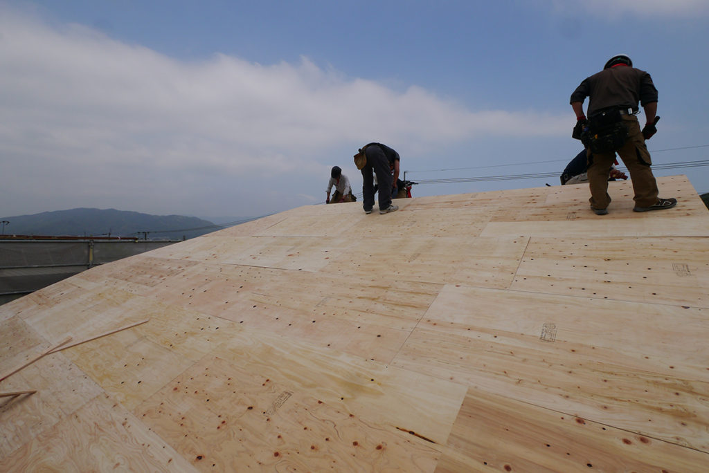 屋根には下地を貼り、この後防水シートを貼っていきます!