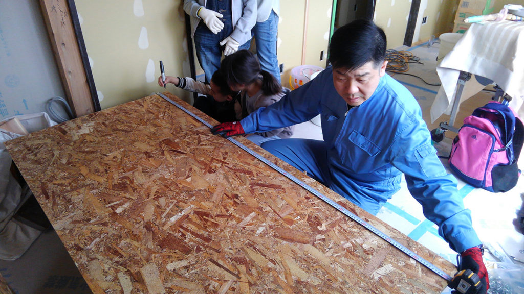 この前造ったOSB合板が壁一面に施されています!