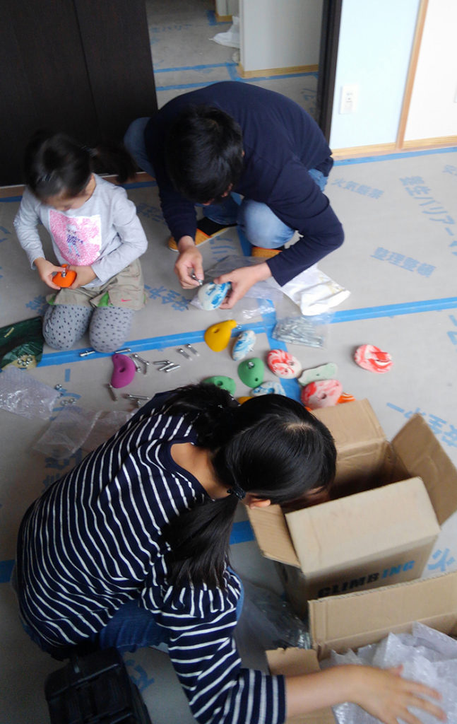 カラフルなホールドを右に左に取り付けます!