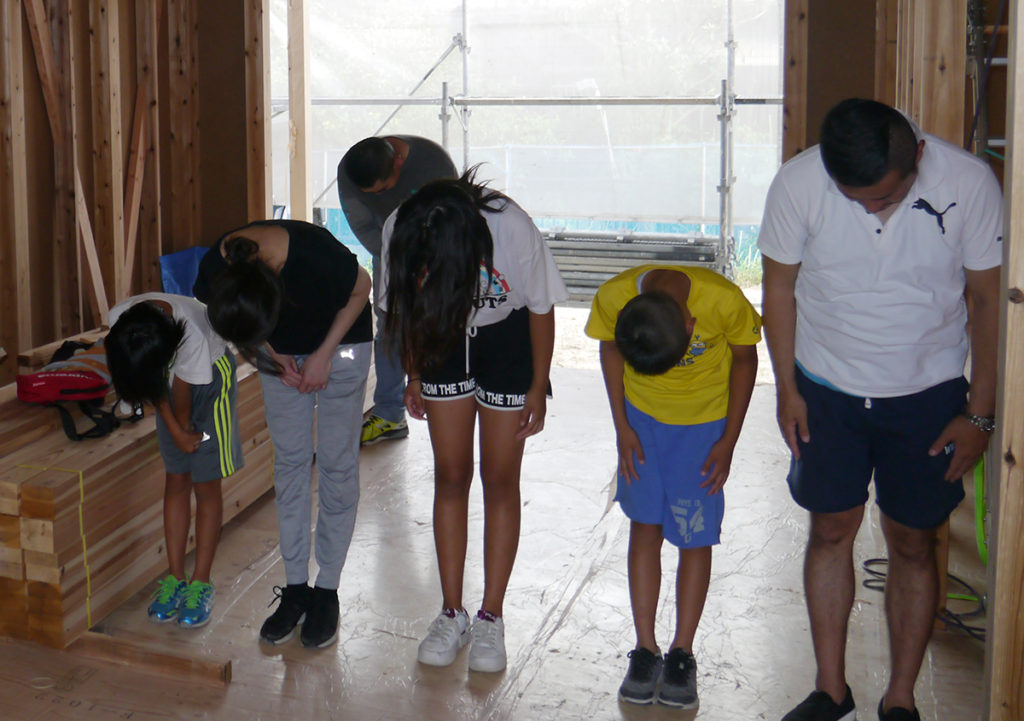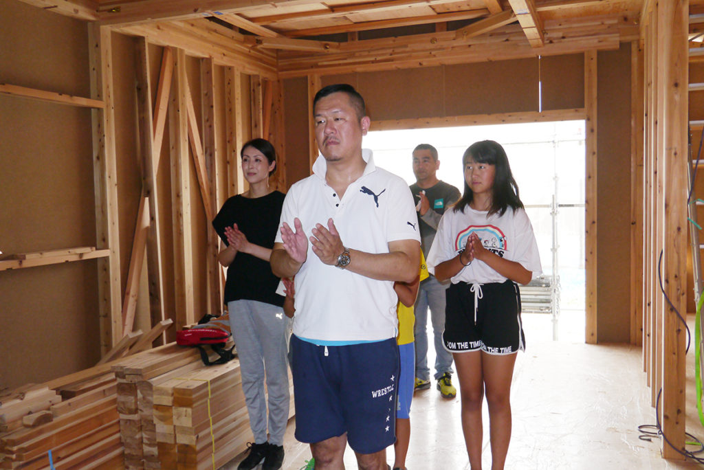 棟上げが終わったことに感謝し、これから竣工まで何事もなく工事が進みますようにと心を込めて・・