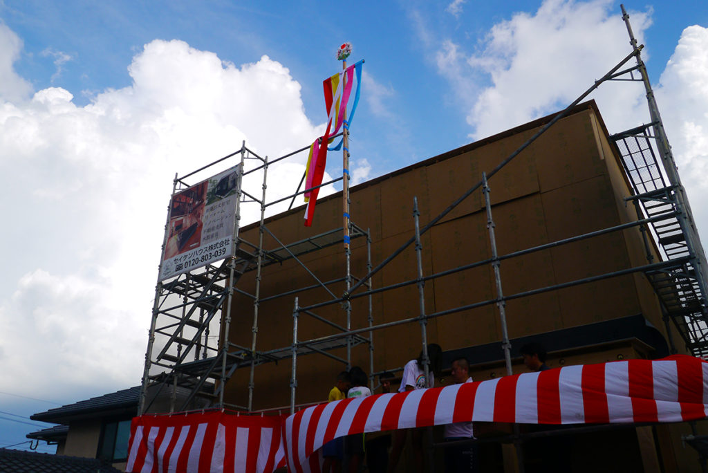 上棟式とは、棟上げが無事に終わったことに感謝し、工事に関わる人が今後の工事の安全を祈願するために行われます(^^♪