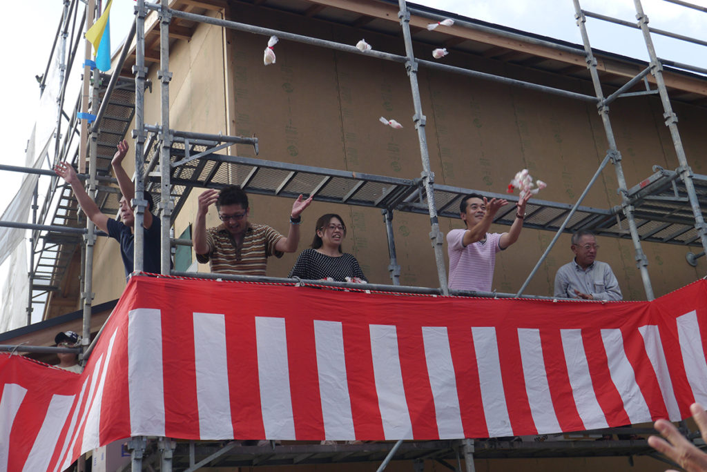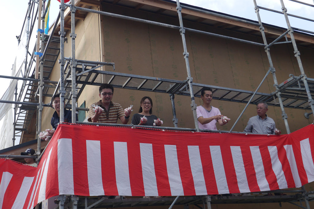 宇美町にて行われた、O様邸の上棟式、餅まきの様子です!