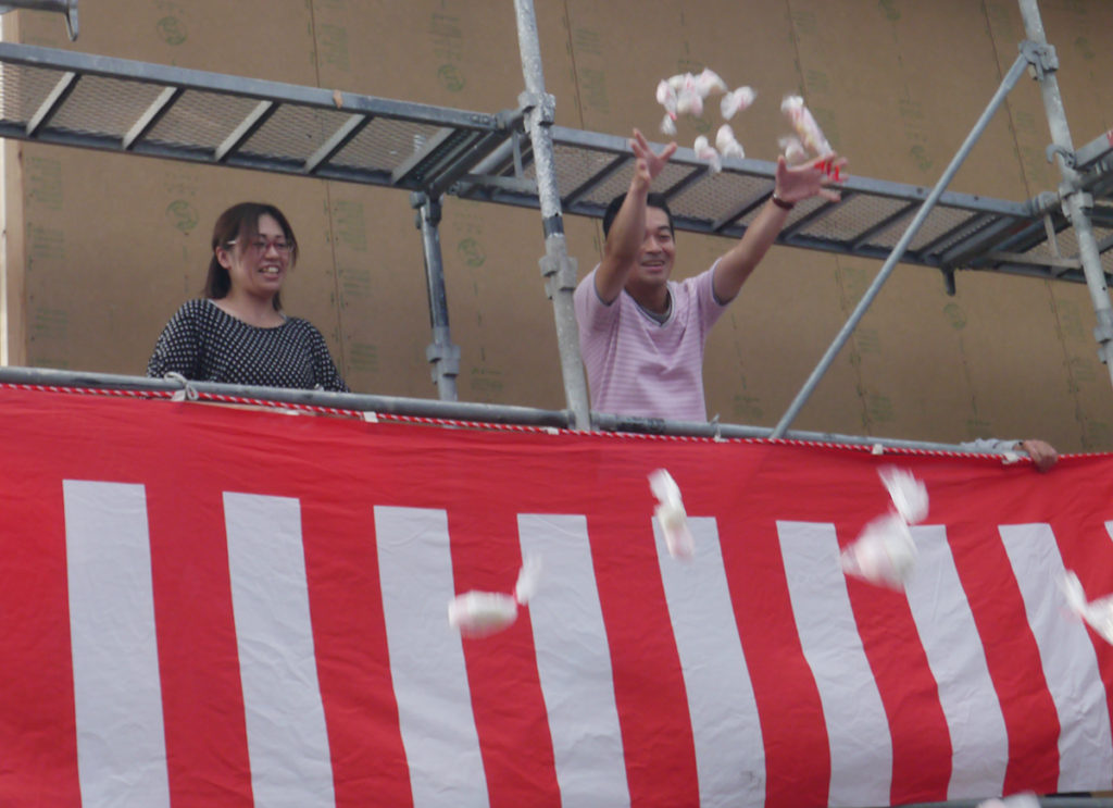 ご主人様より、お集まりいただいた皆様へご挨拶していただき、餅まきスタートです~♪