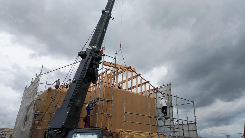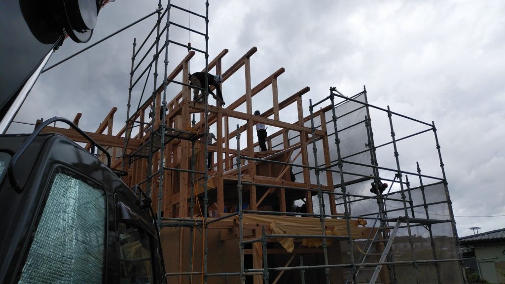 そして、2階の梁の施工まで終わると、次は屋根小屋組みです!