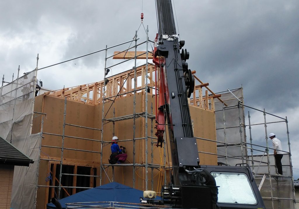 今まで図面上でしか確認できなかった建物の全貌が、短時間で見えてくるので、施主様にとっても『我が家』を感じる一番最初の工程かもしれませんね( `ー´)ノ♪