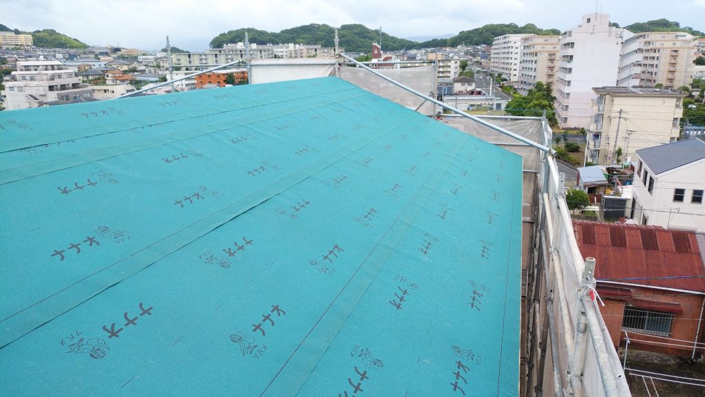 その後、屋根の下地すべてに防水シートを敷き終えて、この日の工事はすべて、終了しました!