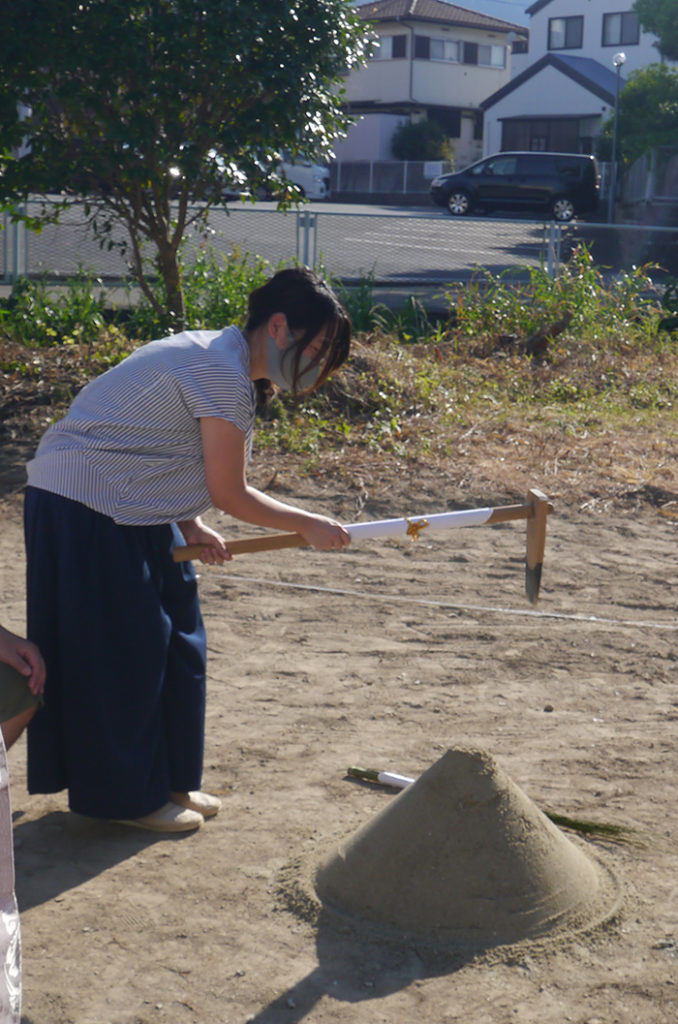 『四方祓い』は、敷地の四隅を北東、南東、南西、西北の順に酒、塩、を撒いて、土地の平安を祈念して祓い清めます( `ー´)ノ♪