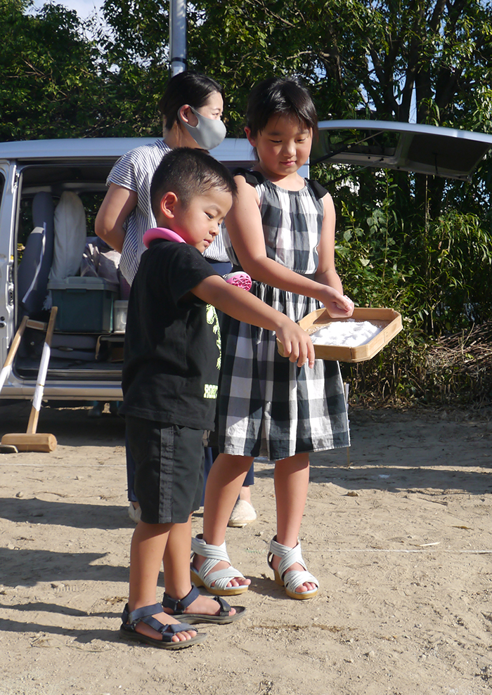 そして、Aちゃん、Hくんは、お塩を敷地全体に撒いていました!