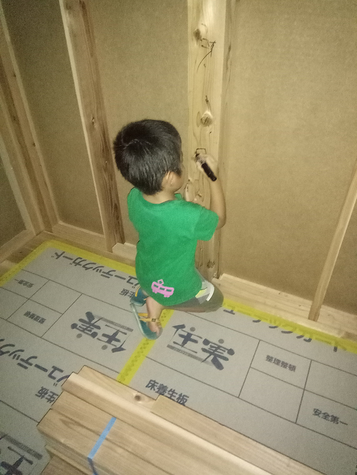 セイケンハウスでは、完成したら見えなくなってしまう壁の内側や、柱を選んで記念になる一言を施主様に書いていただいてます(*’▽’)♪