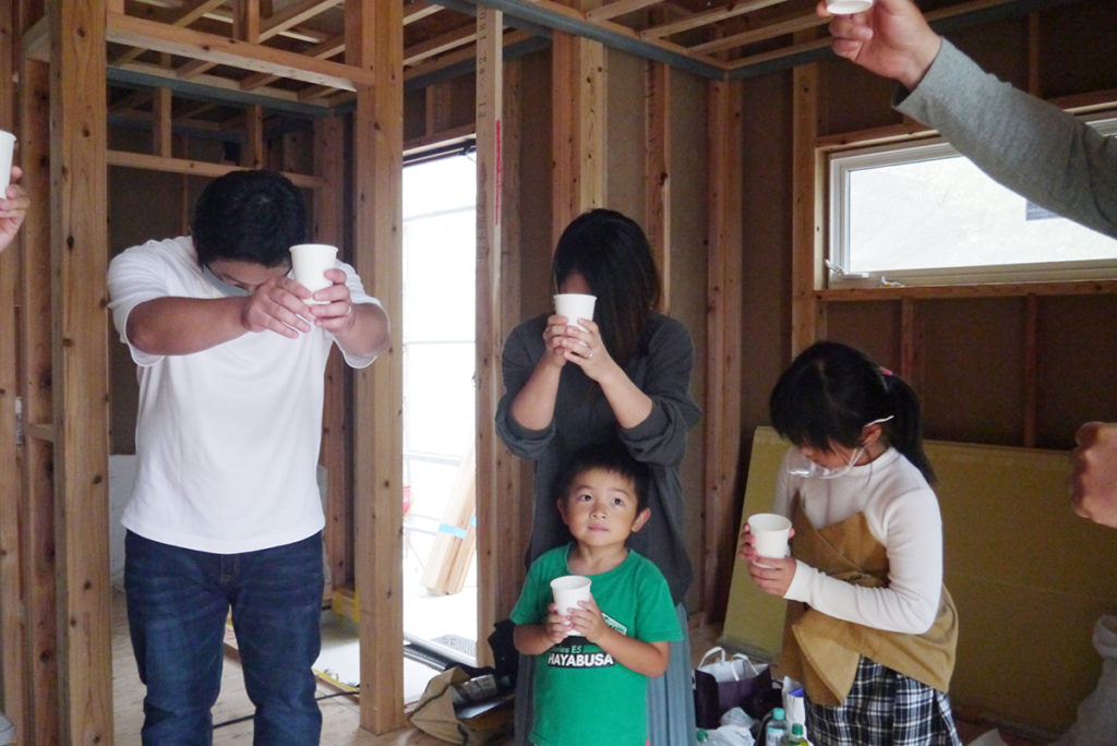 上棟式が終わると、お神酒で乾杯します!
