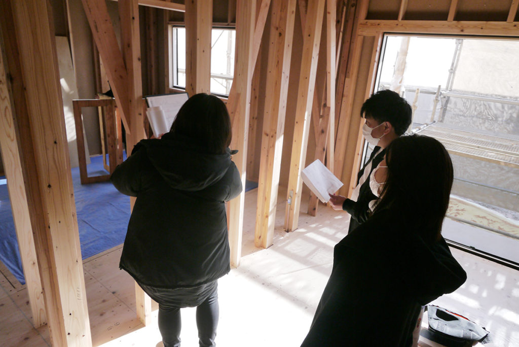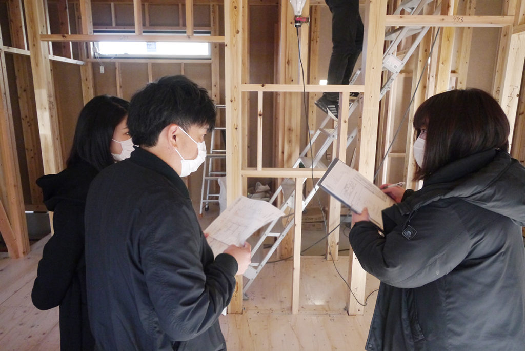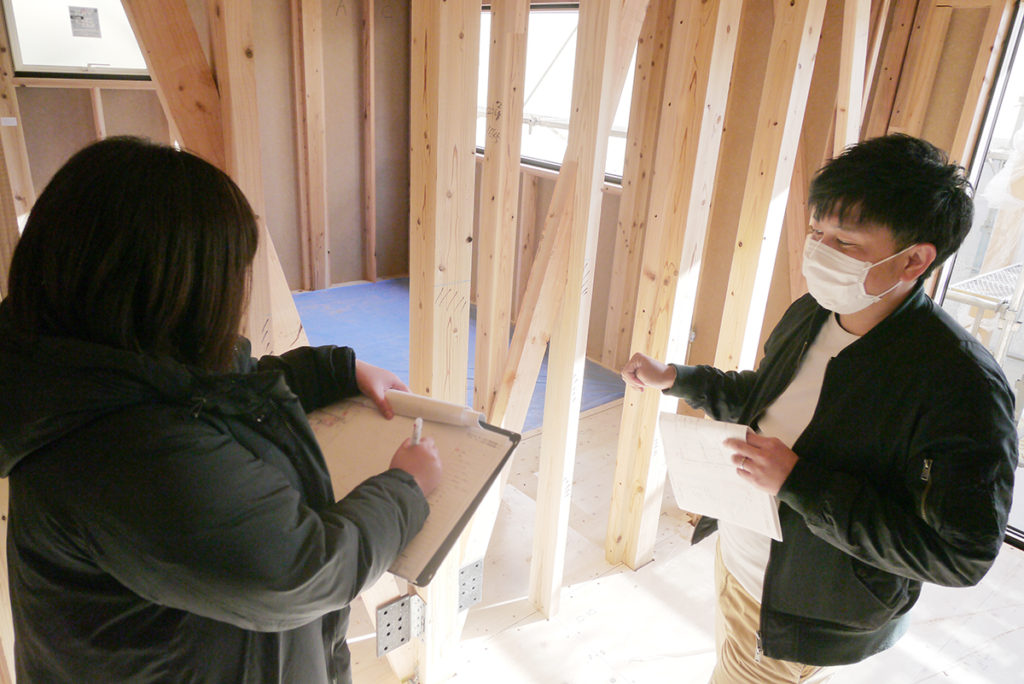 お客様が住みやすいお家を造るために、現場で位置や高さ、個数なども確認しながら決めていきました!