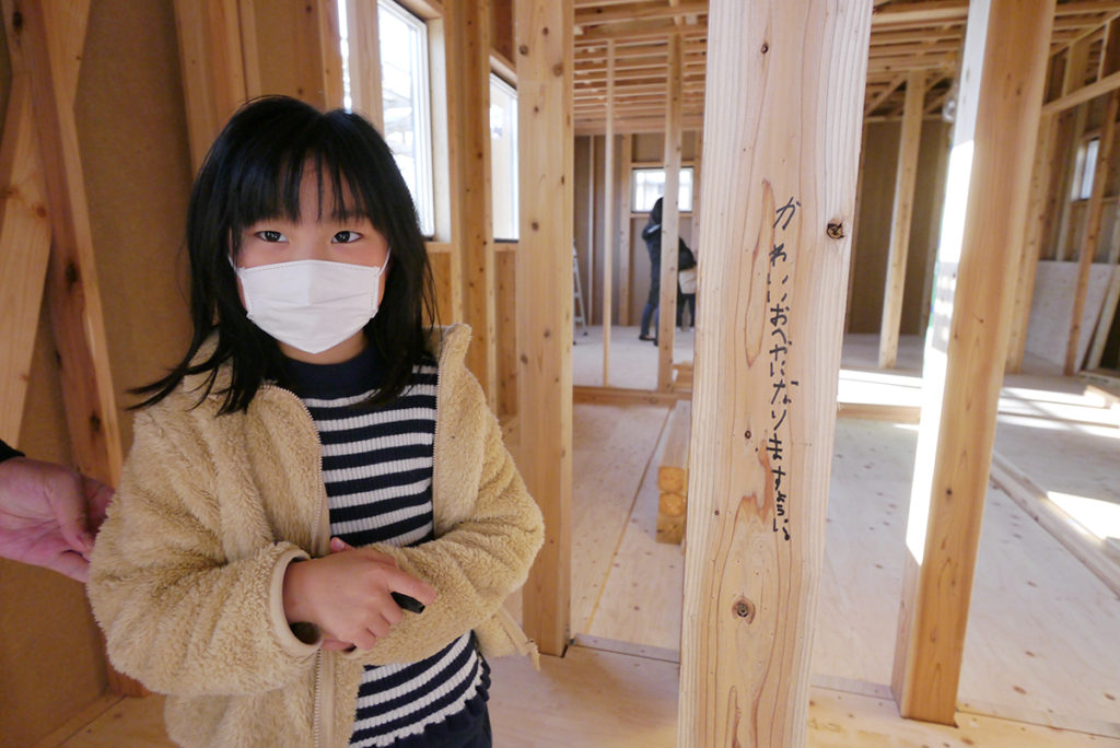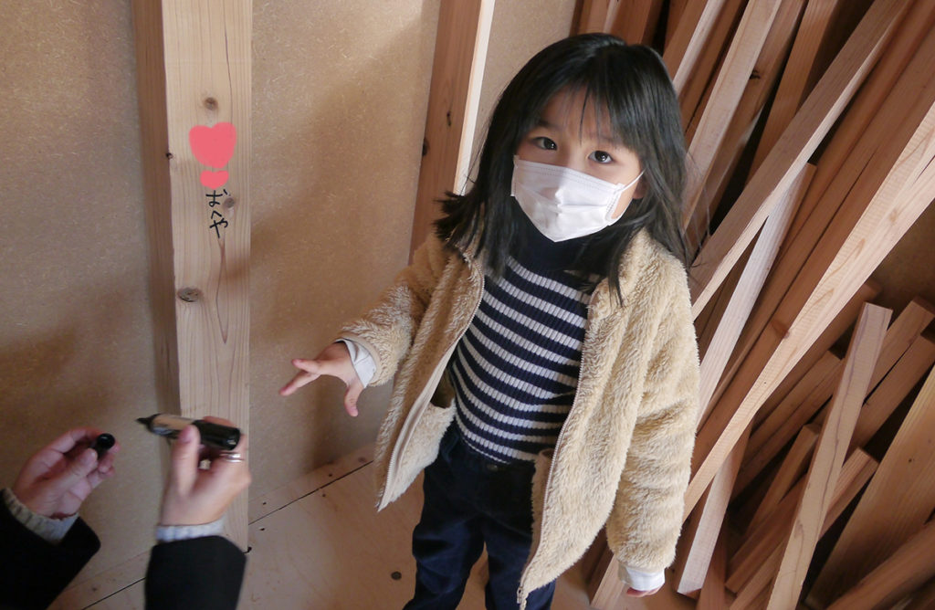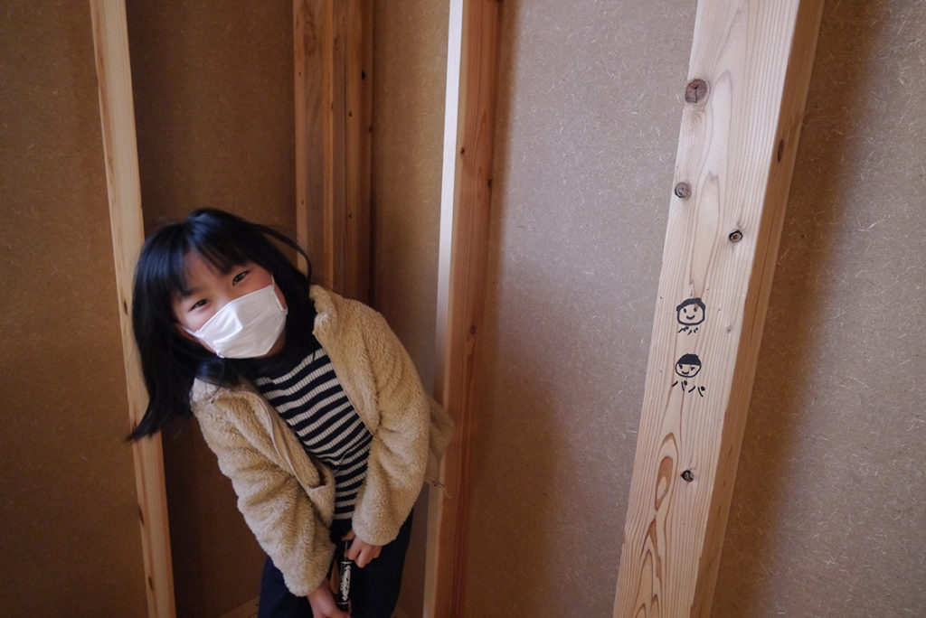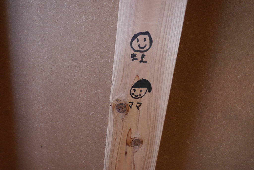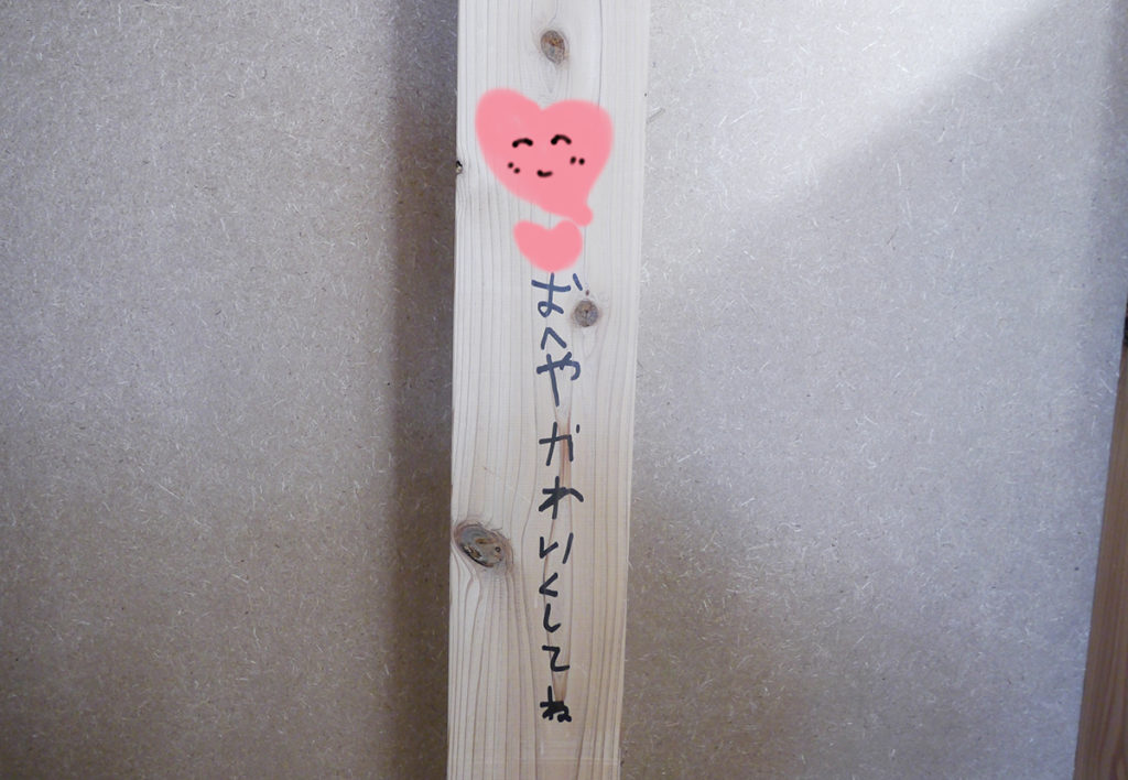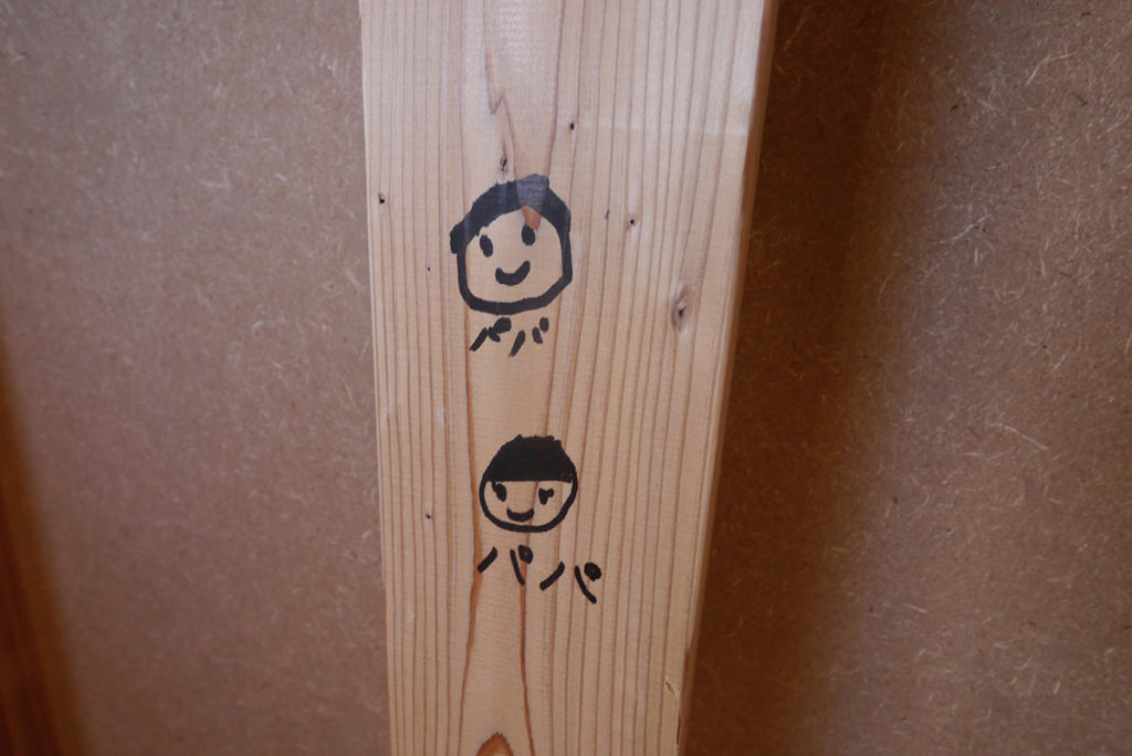 『思い出つくり』では、施主様に完成したら見えなくなってしまう壁や柱を選んで、記念になる一言を書いていただいています(^^♪