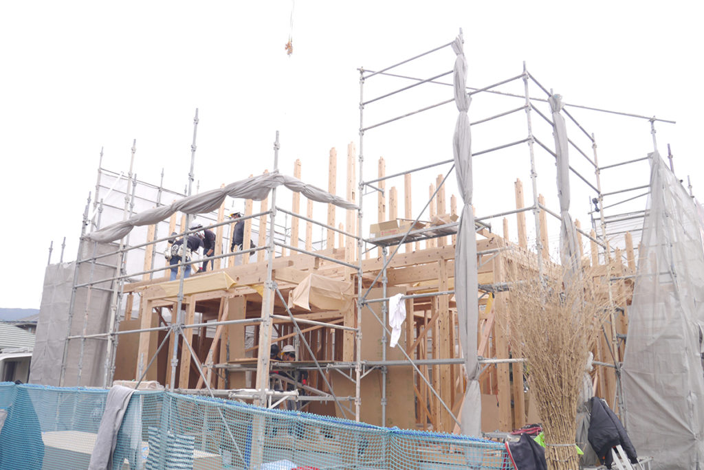 先日、鳥栖市Y様邸の建築現場にて、棟上げ工事が行われました!
