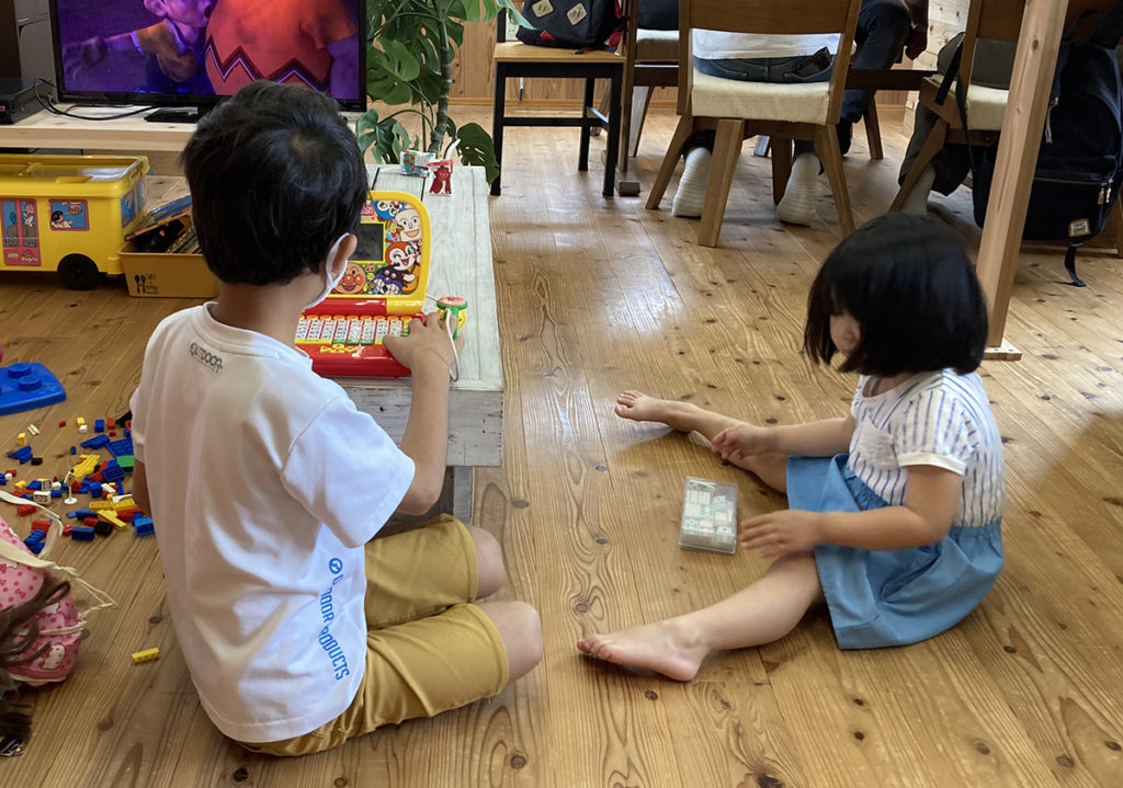子供たちはじっとしているだけでなく、絵本を読んだり、勉強したり、ブロックを組み立てたり、急に追いかけっこが始まったり!