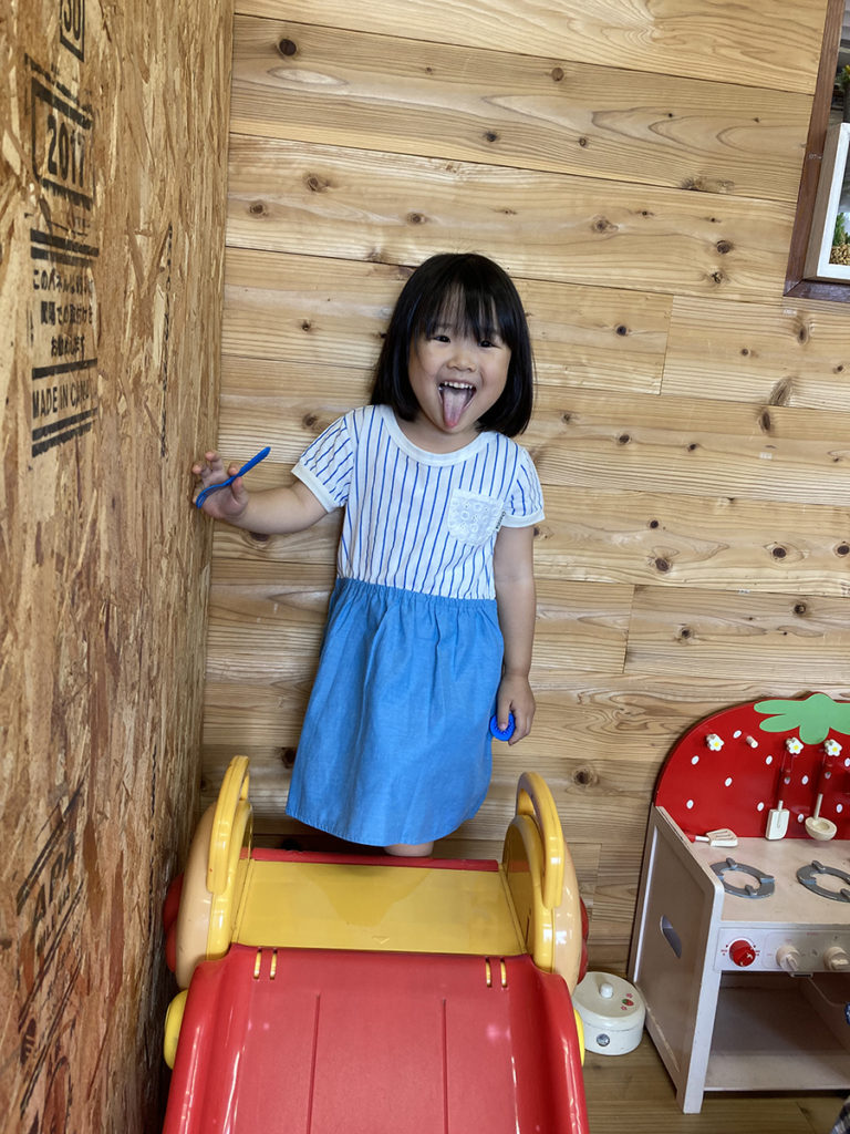 その横では、リニューアルしたおもちゃスペースで遊ぶWちゃんの姿が…♡