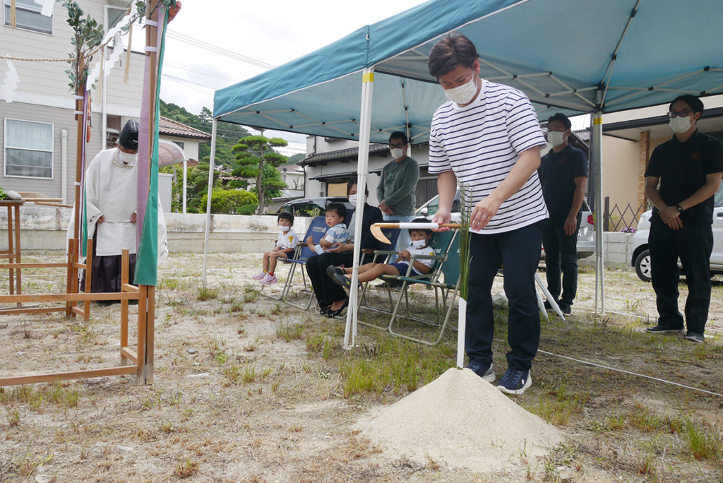 土地の四隅を北東、南東、南西、西北、の順にお神酒、お塩を撒いて祓い清めます!