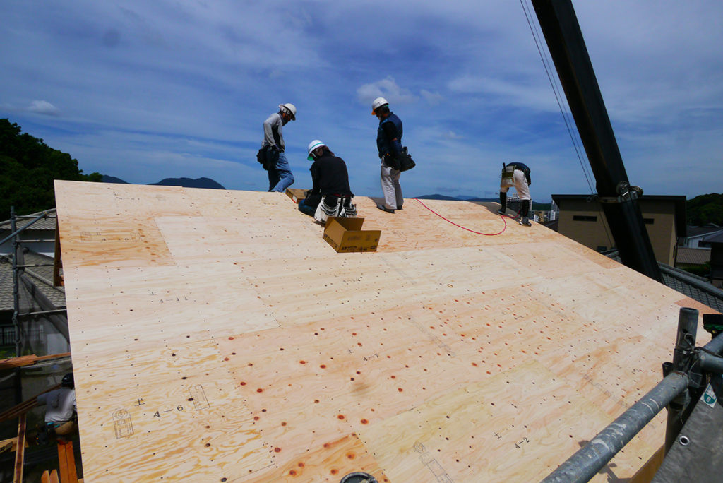 それから工事は、屋根の下地(合板)を施工する工程へ!