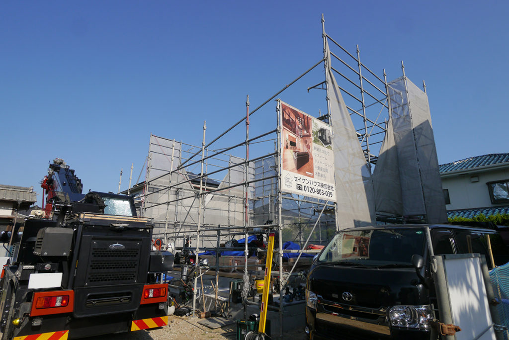 一度にたくさんの木材を運び入れることができ、棟上げの時間短縮に大いに役立っています(^^♪
