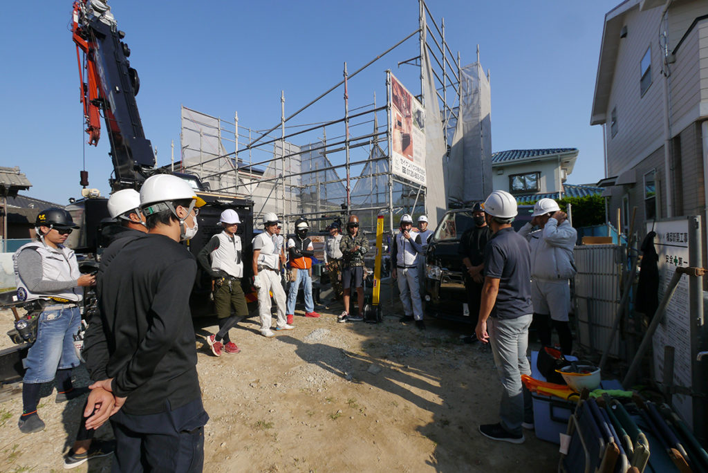 上棟当日は、朝早くにミーティングを行います!