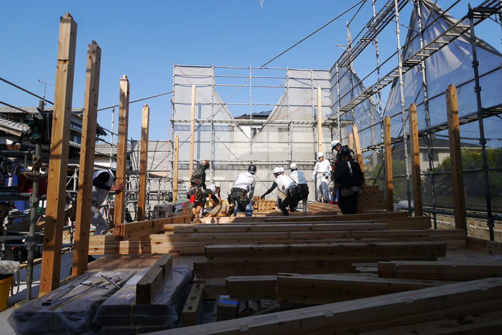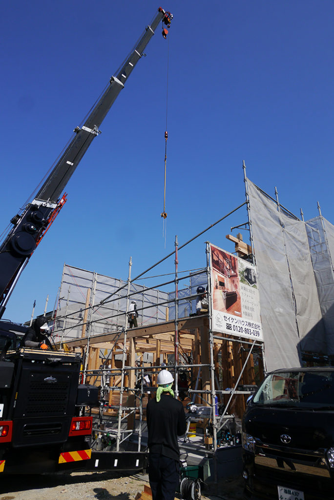 大工さんだけではなく、クレーンの運転手さんとのコンビネーションも大事ですね(^^♪
