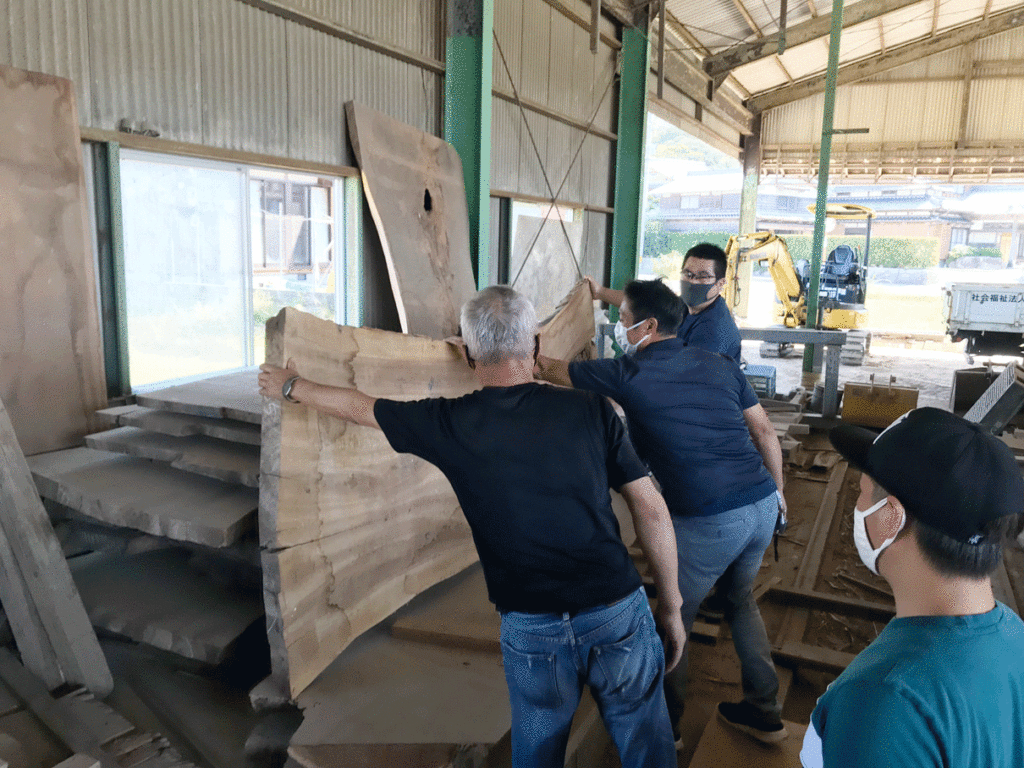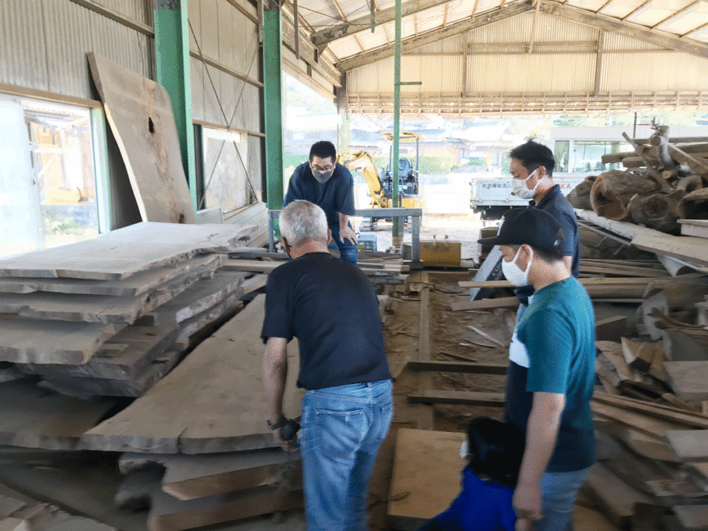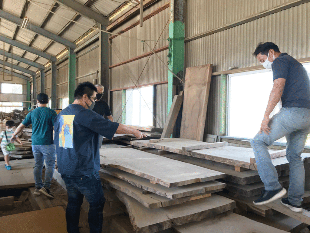 もちろん、テーブルを造る一枚板を探しにです(^^♪