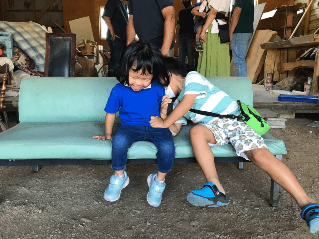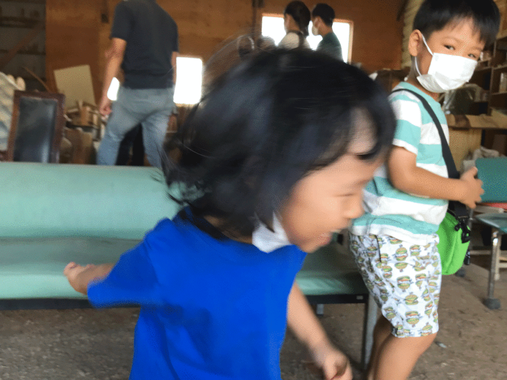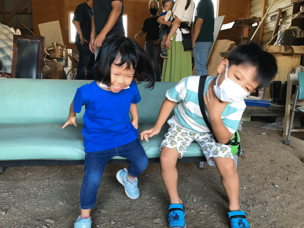テーブルについてのお話をしているその横では、U様家の元気キッズ、Kくん、Kちゃん!