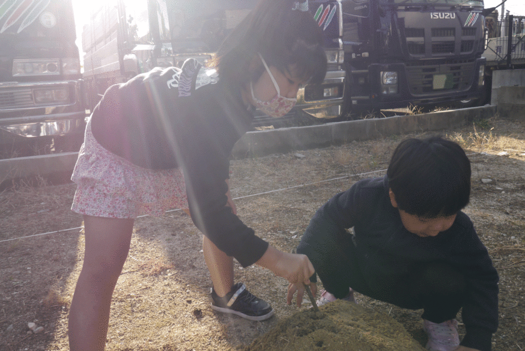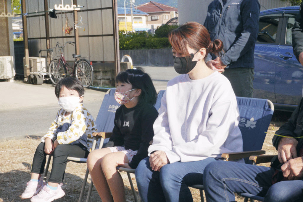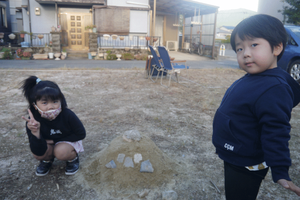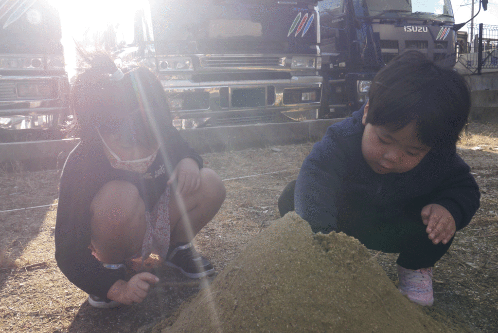 地鎮祭終了後、I様家のKちゃんたちは盛砂に夢中♡