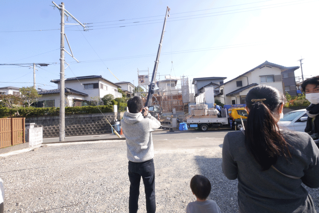 棟上げの日は、図面の上でしか確認できなかったお家が、目の前で組み上がっていく様を間近に見ることができる、とても大切な日です!