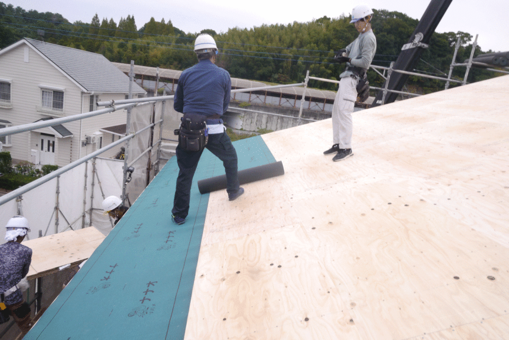 野地板の上には、さらに防水シートを施工します!