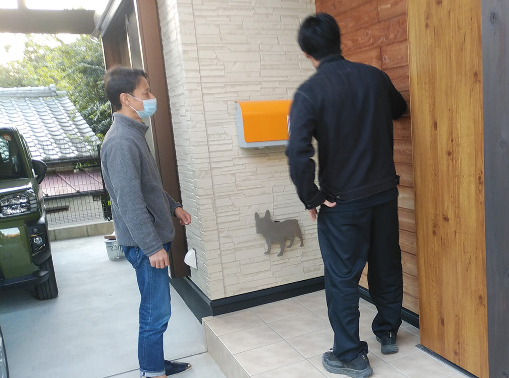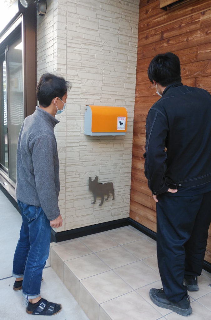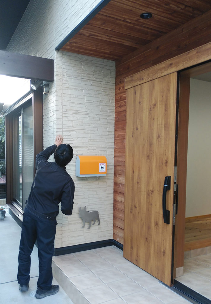 竣工の時に付けていた玄関のわんこの照明に並行して、わんこちゃんのポストも付けられていました(#^^#)♡