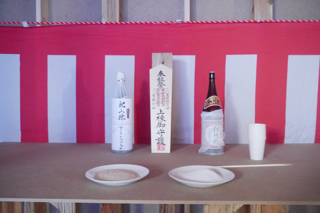 次にお清めの意味で、建物の四隅に酒、塩、米を撒いて祓い清める四方祓いを行います!
