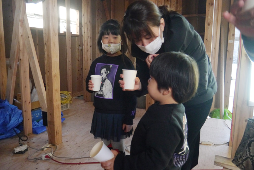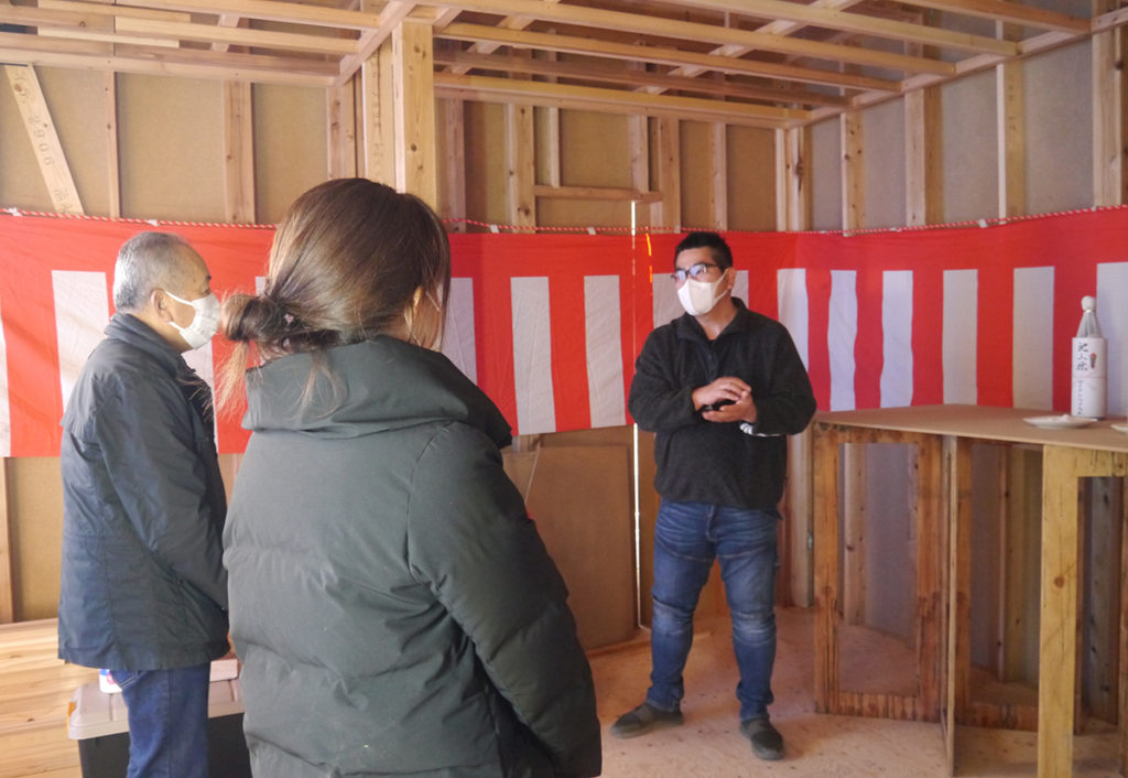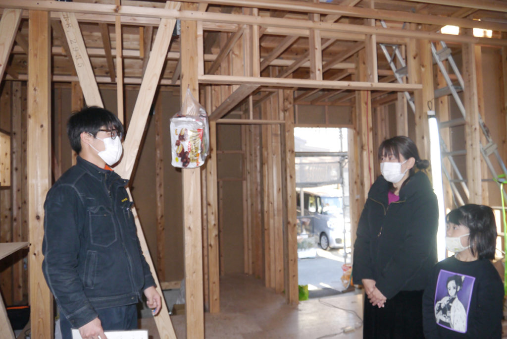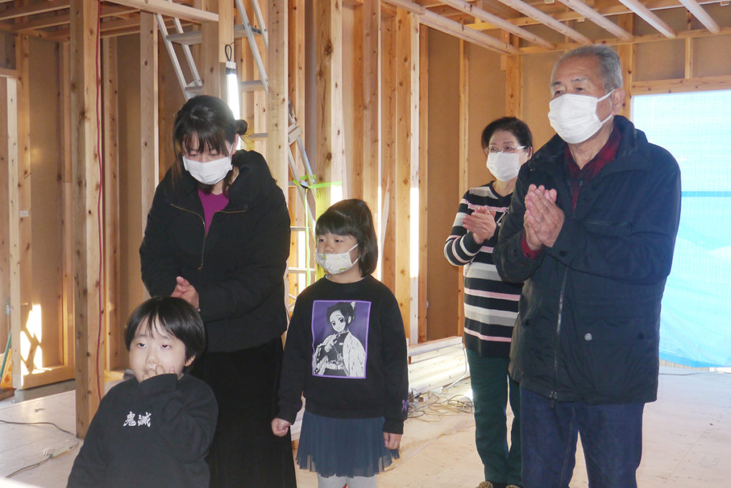 お家が建ち上がっていくのを感じながら、スタッフへ暖かいお言葉を伝えていただきました(≧▽≦)
