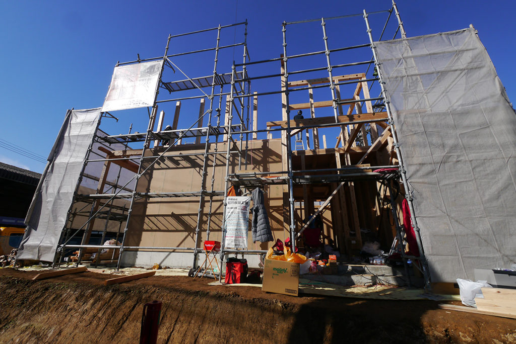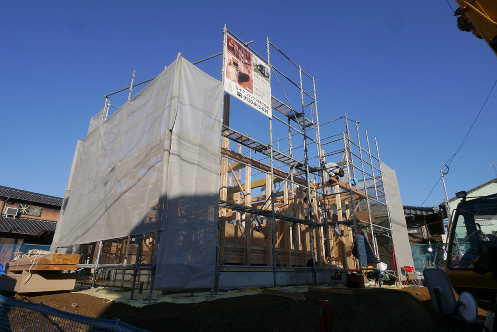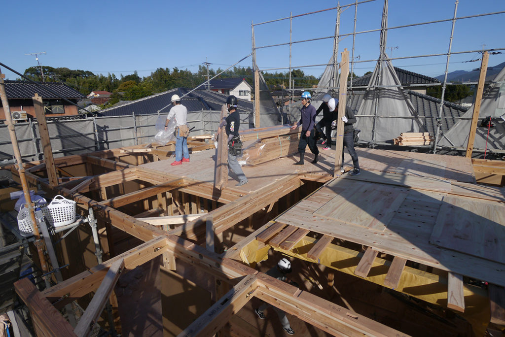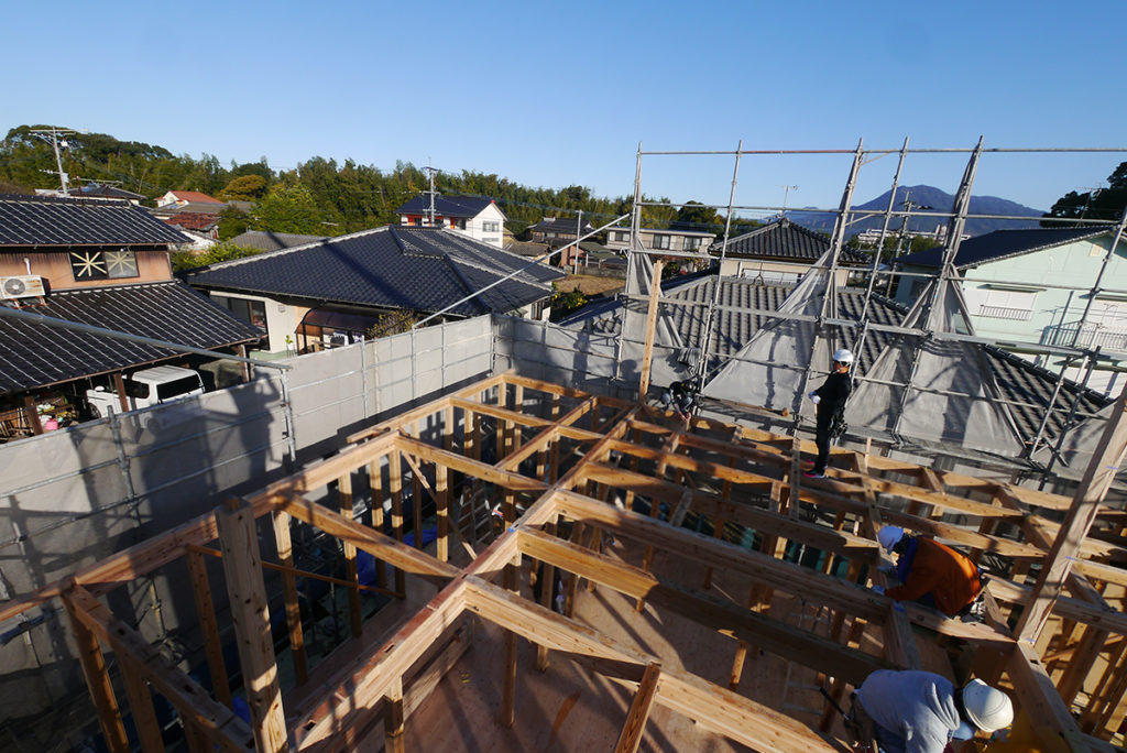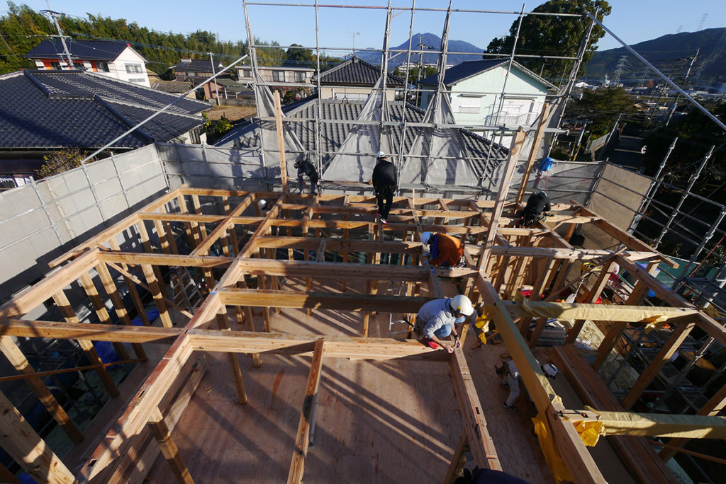 師走、冬曇りの合間によく晴れた某日、筑紫野市にてI様邸の上棟工事が行われました!
