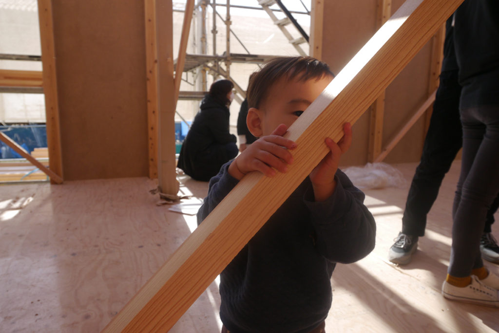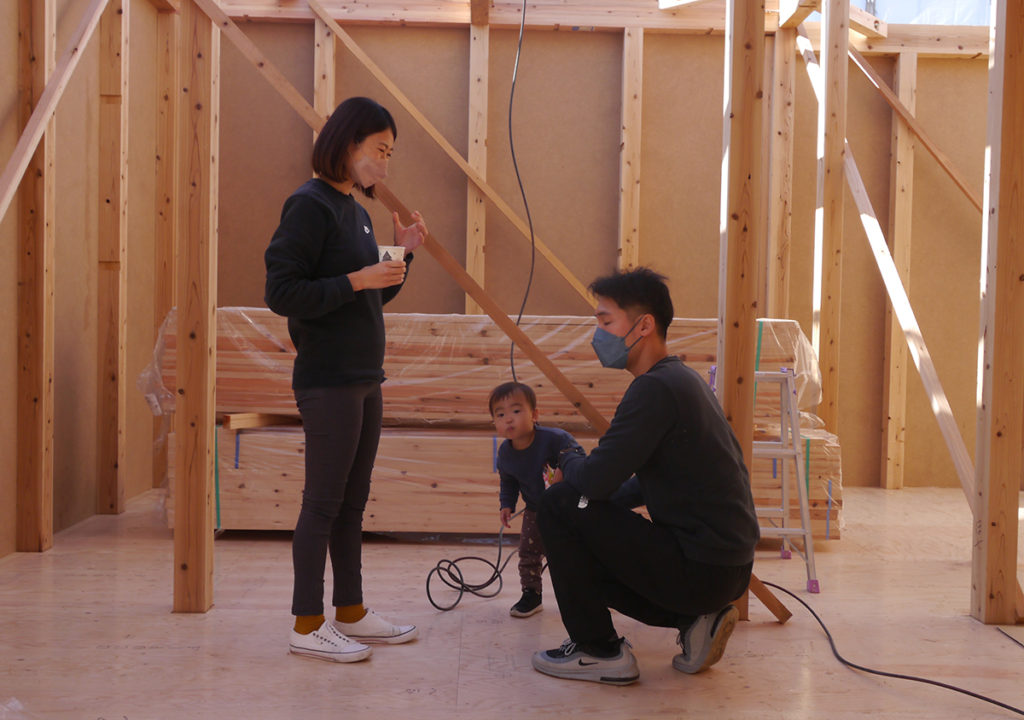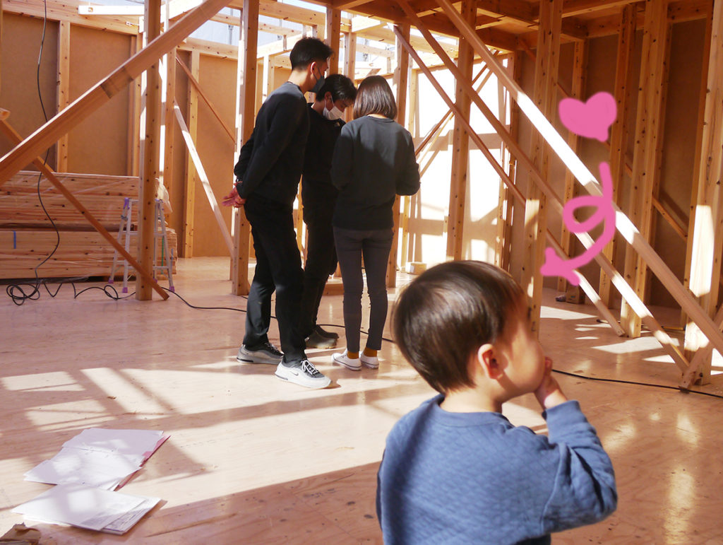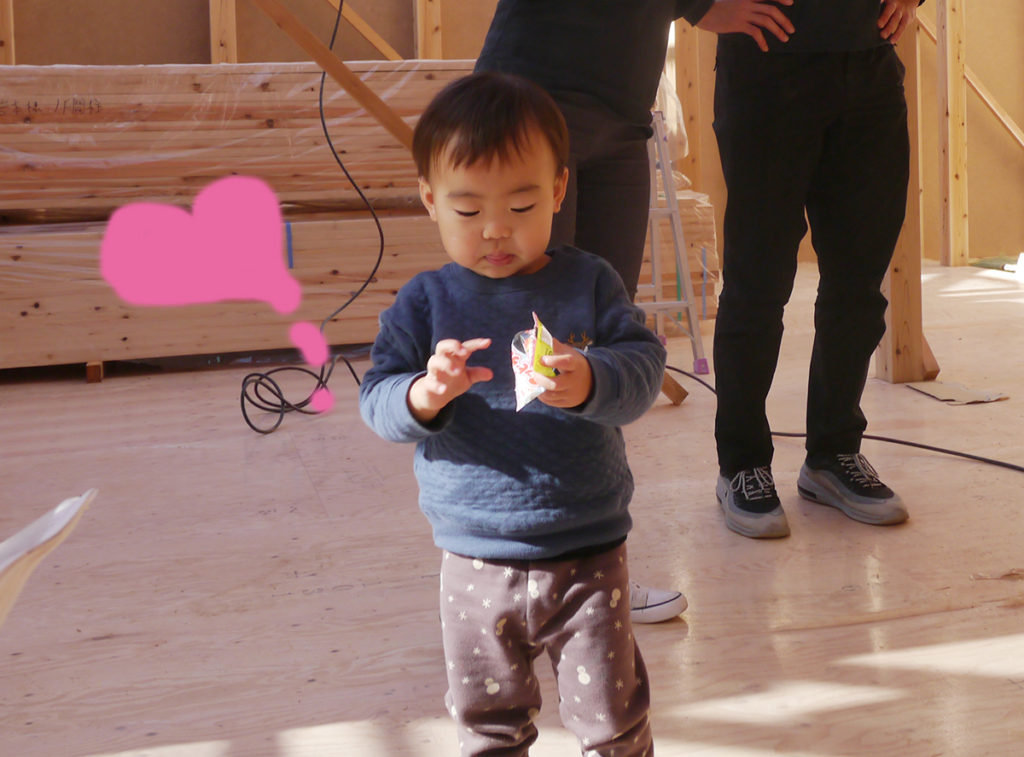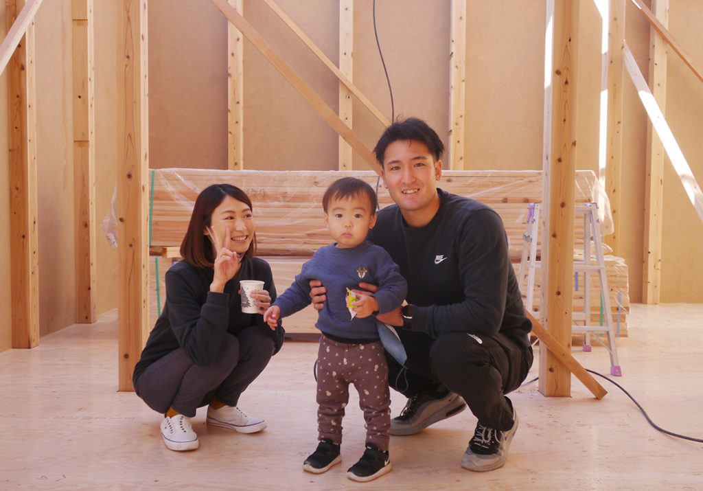 この日、I様ご家族は、棟上げの応援に駆けつけてくださいました!