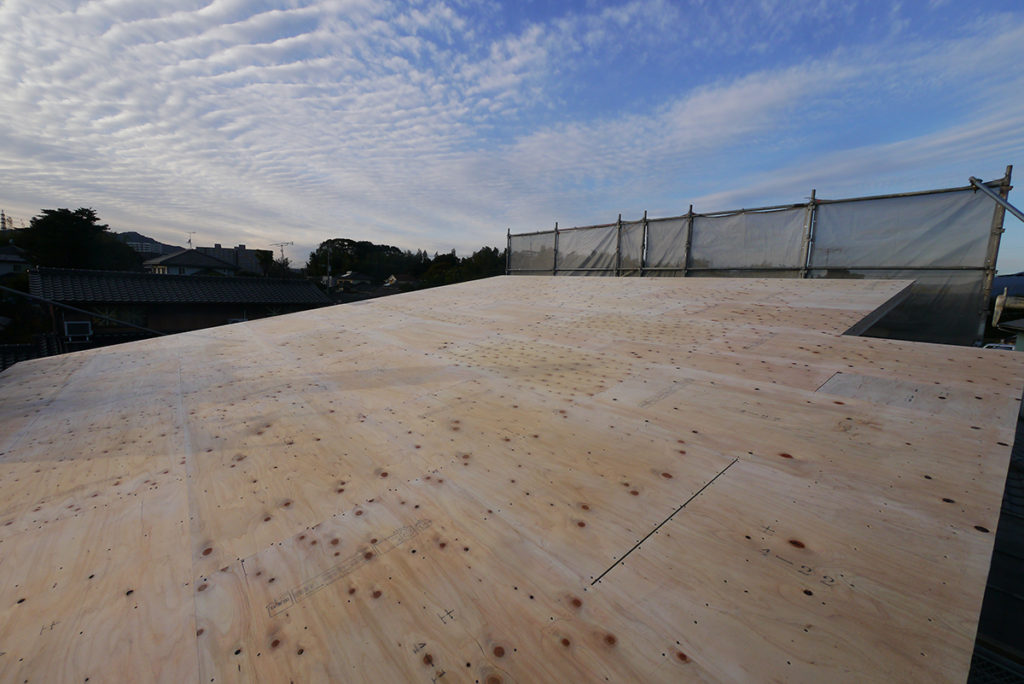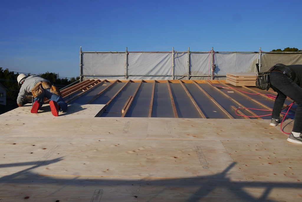 通気スペーサの上に、屋根の下地である、野地板を施工します!