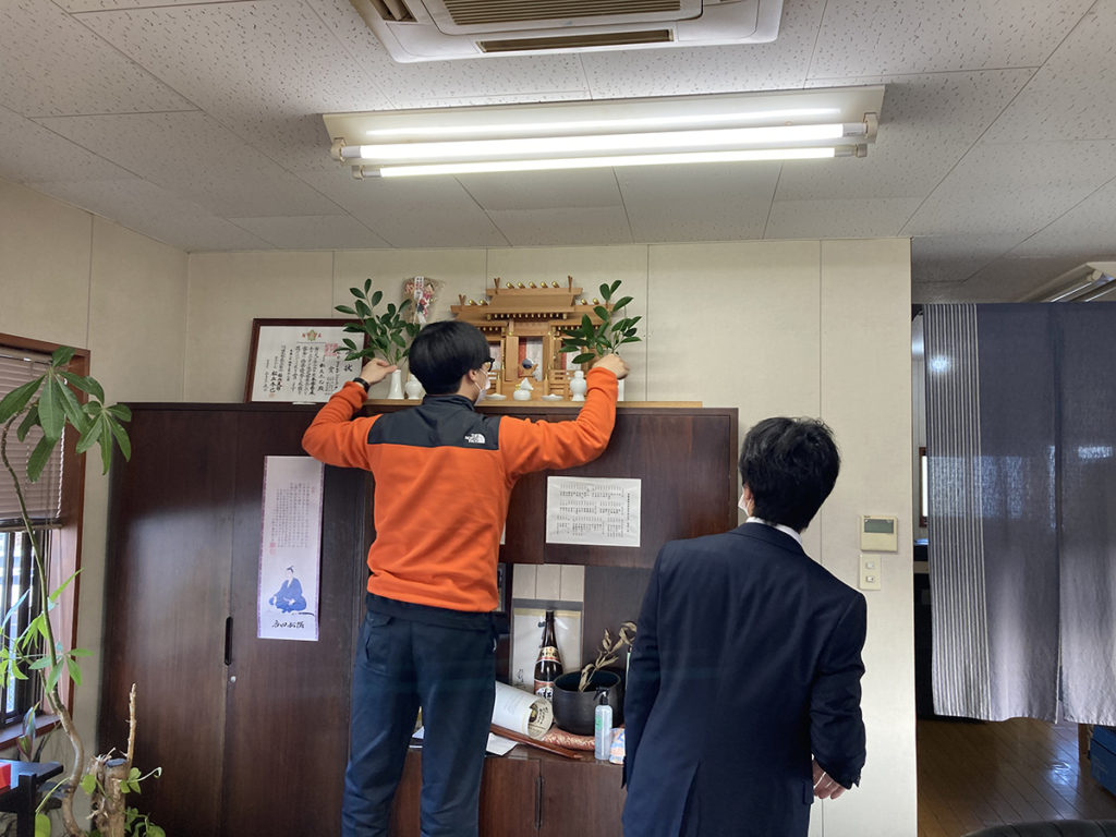 セイケン事務所では、ぎーちゃんと倉田くんが古い御札を外しています!