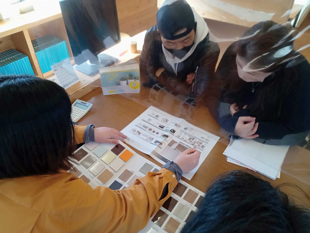 キッチン、お風呂、洗面などなど、サンプルを見ながら色味を決めたり・・・