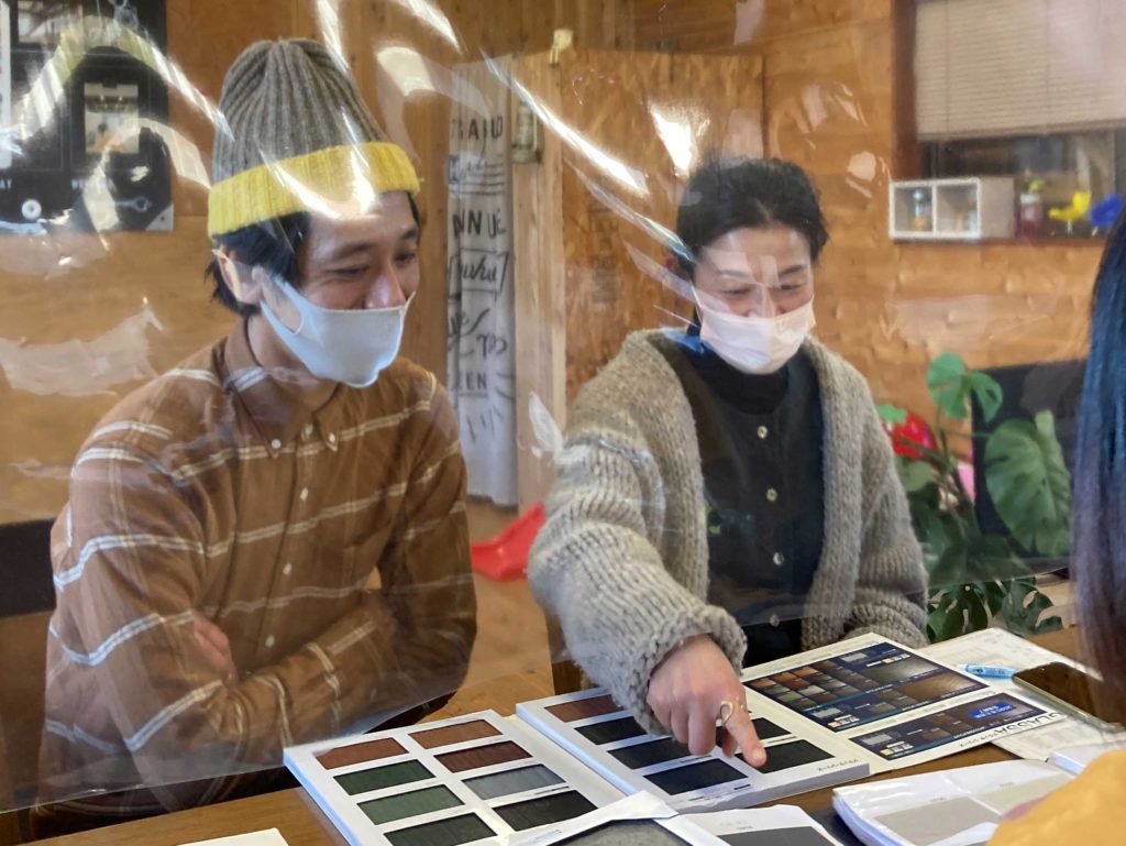 この日のF様は、大よそ検討されているようでしたが、色味で迷われているようでした!