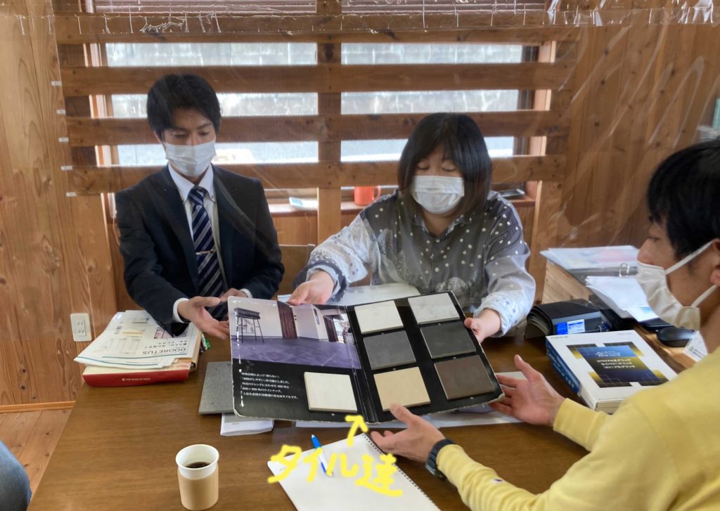 土間仕上げにするか、タイル仕上げにするか、F様は、タイル仕上げがご希望ということで、今度はタイルの色を決める事になりました!