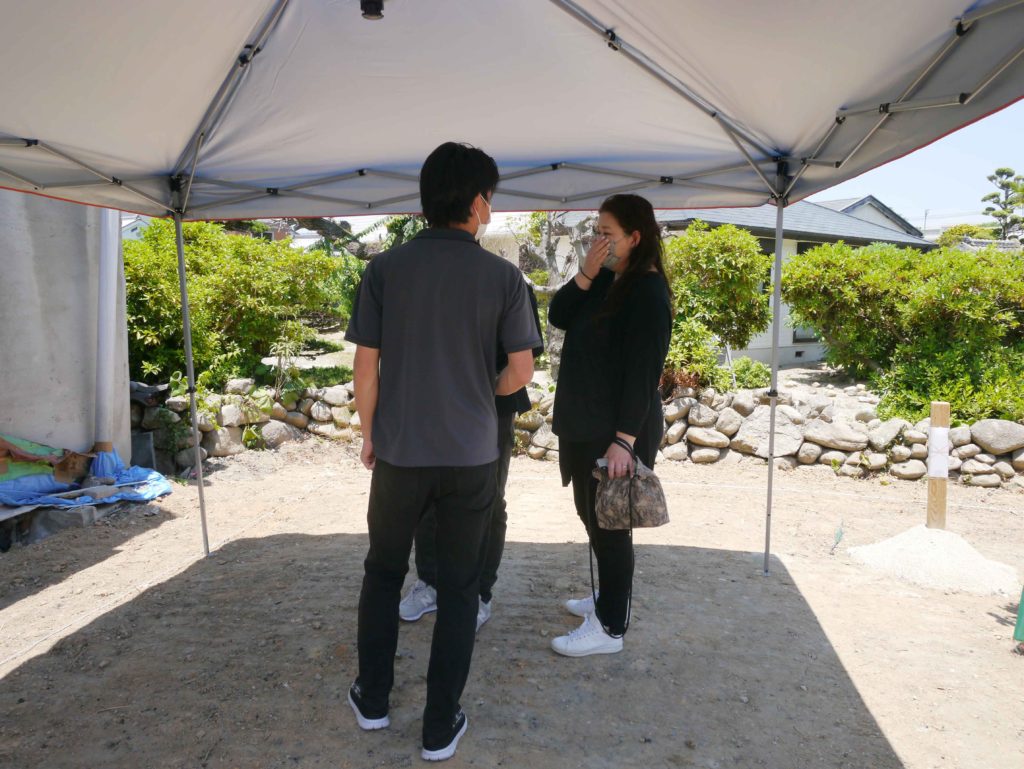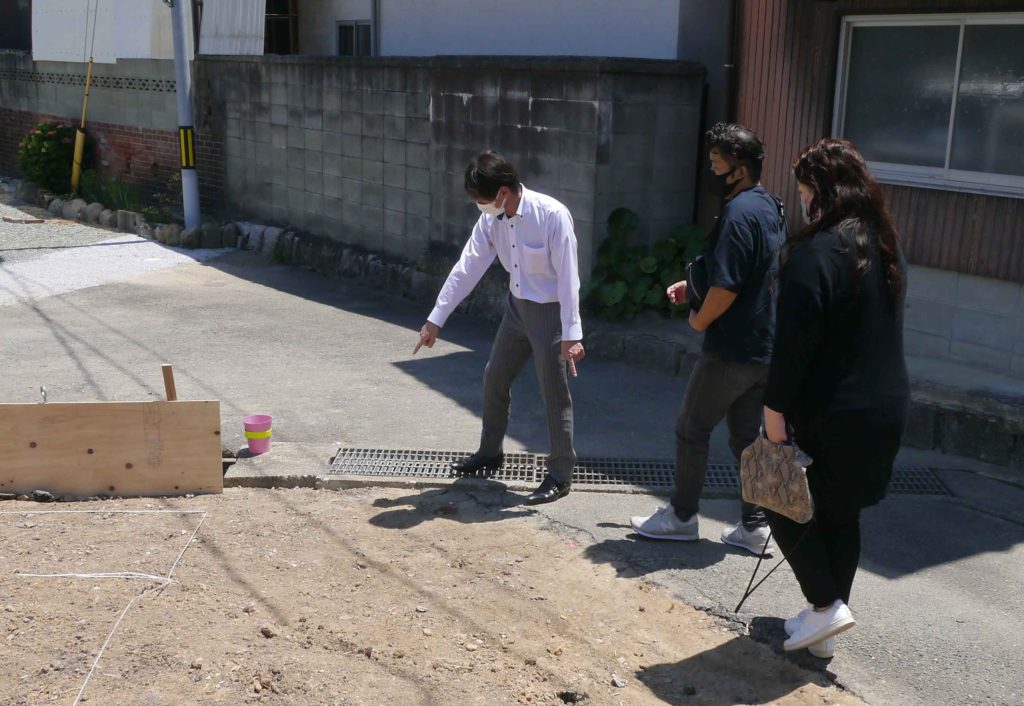 到着されたI様と、準備の間に境界の確認をしました!