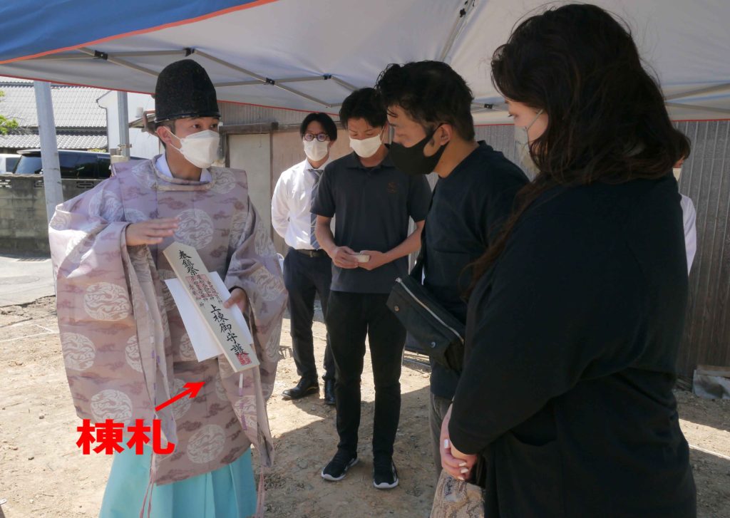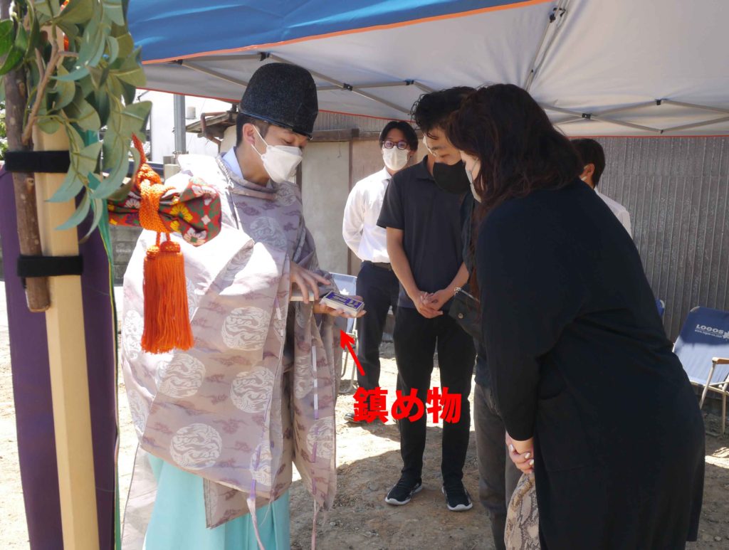 『鎮物』は、基礎工事の際に下に埋めるもので、『上棟札』は、棟上げの際に棟木に納めます!