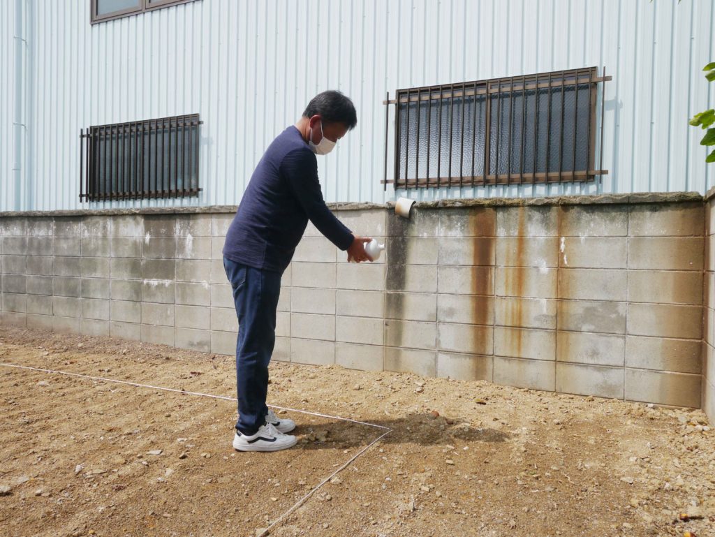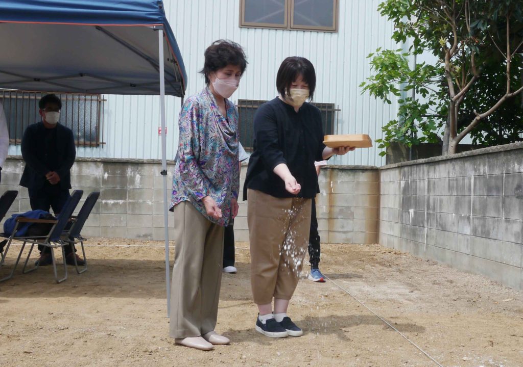 四方祓いは、土地の四隅を施主様がお神酒、お塩で祓い清めます!
