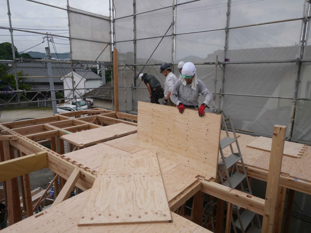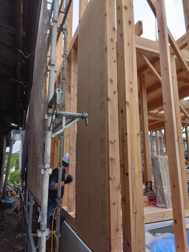 同時に壁には、耐力面材を設置しています!