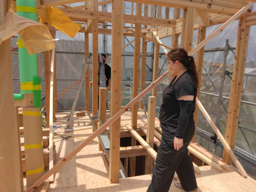 大工さんたちが、お昼休憩に入られたので、棟が上がったお家の中を探検です!