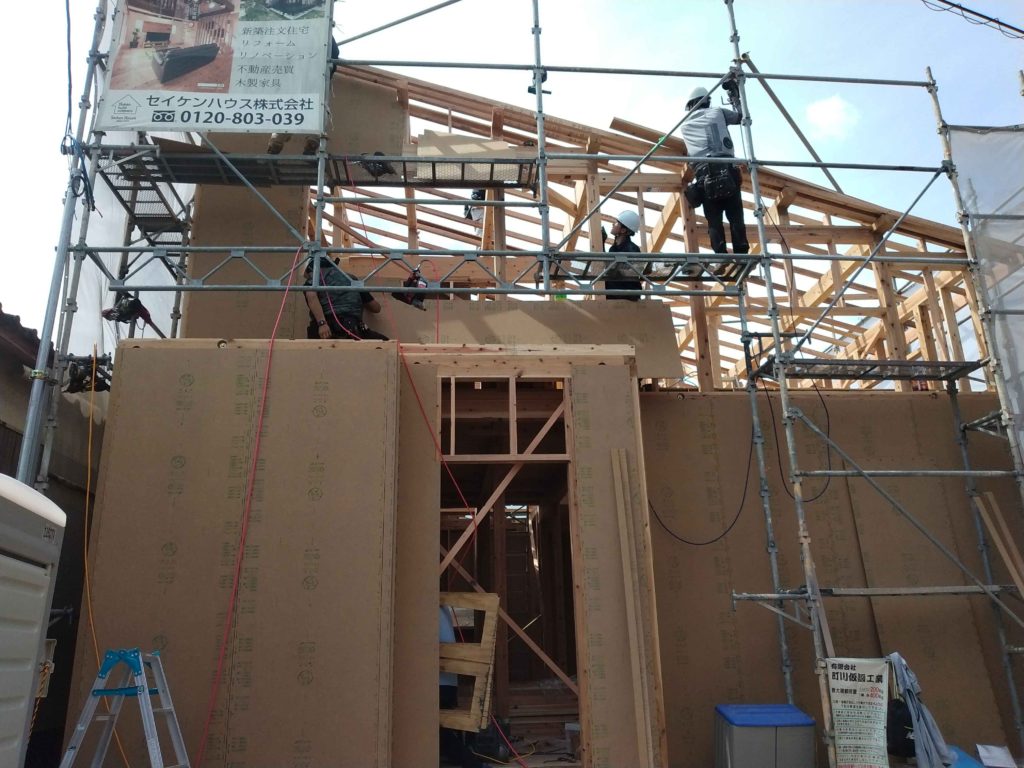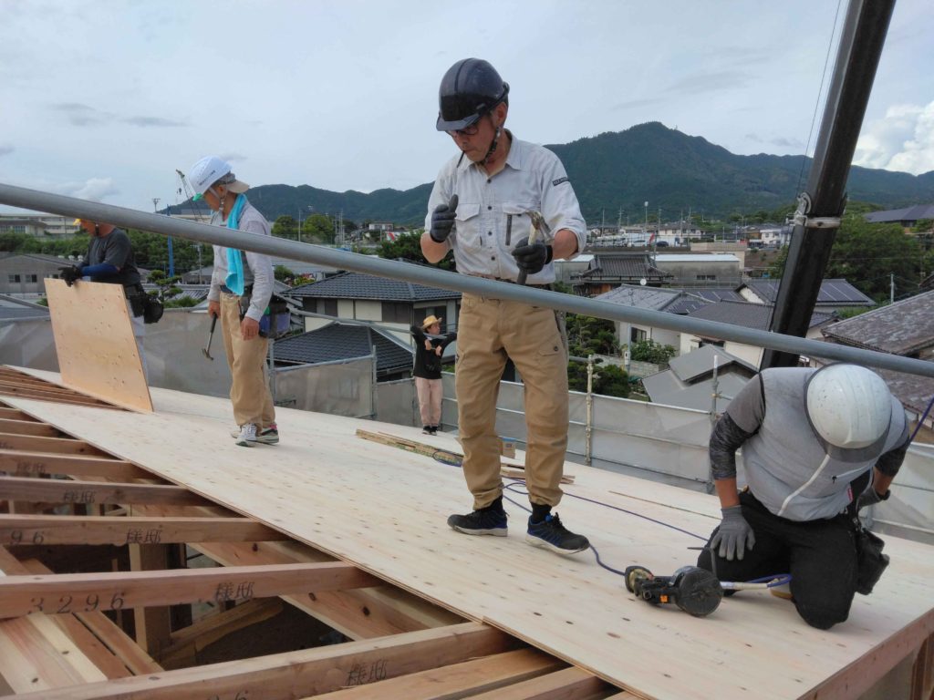 棟木が上がった後も、屋根の下地工事まで作業は続きます(#^^#)